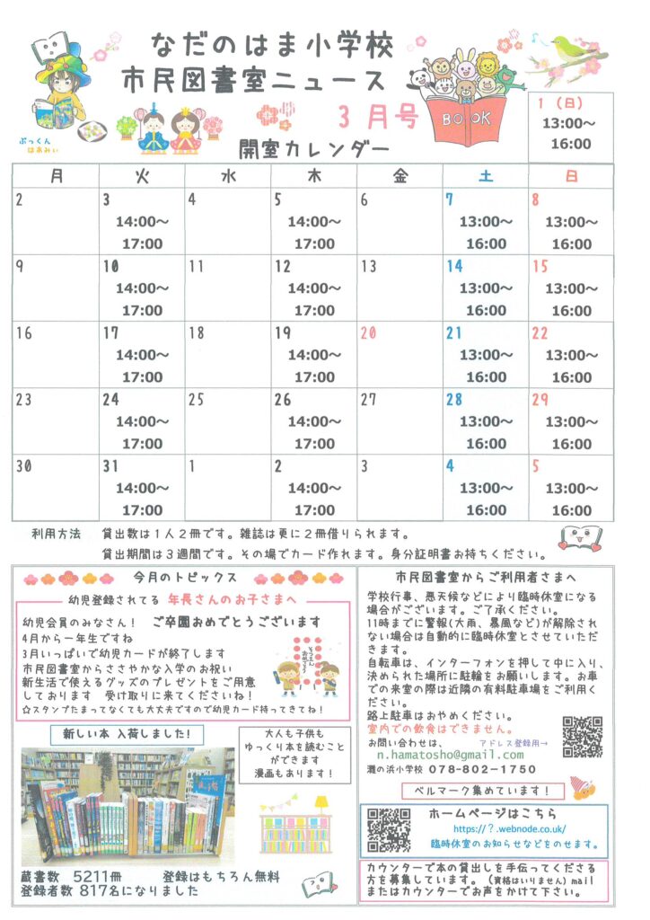 なだのはま小学校市民図書室ニュース3月号