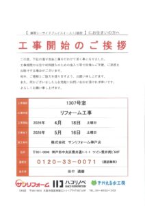 [3番館]リフォーム工事のお知らせ