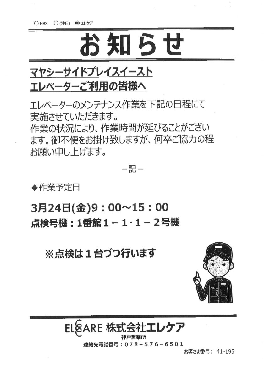 1番館エレベーター点検