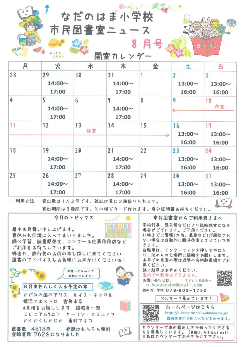 なだのはま小学校市民図書室ニュース8月号