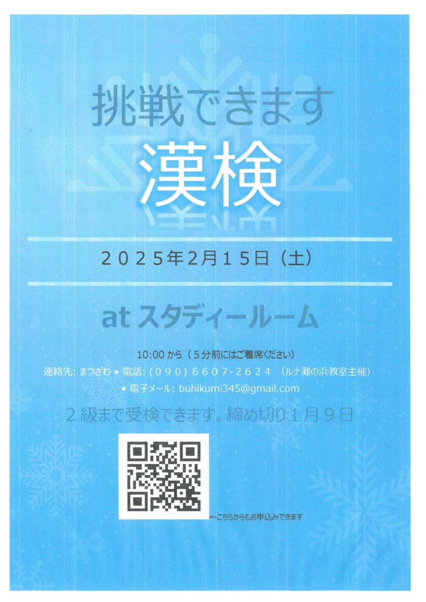 2025.2/15(土)挑戦できます「漢検」