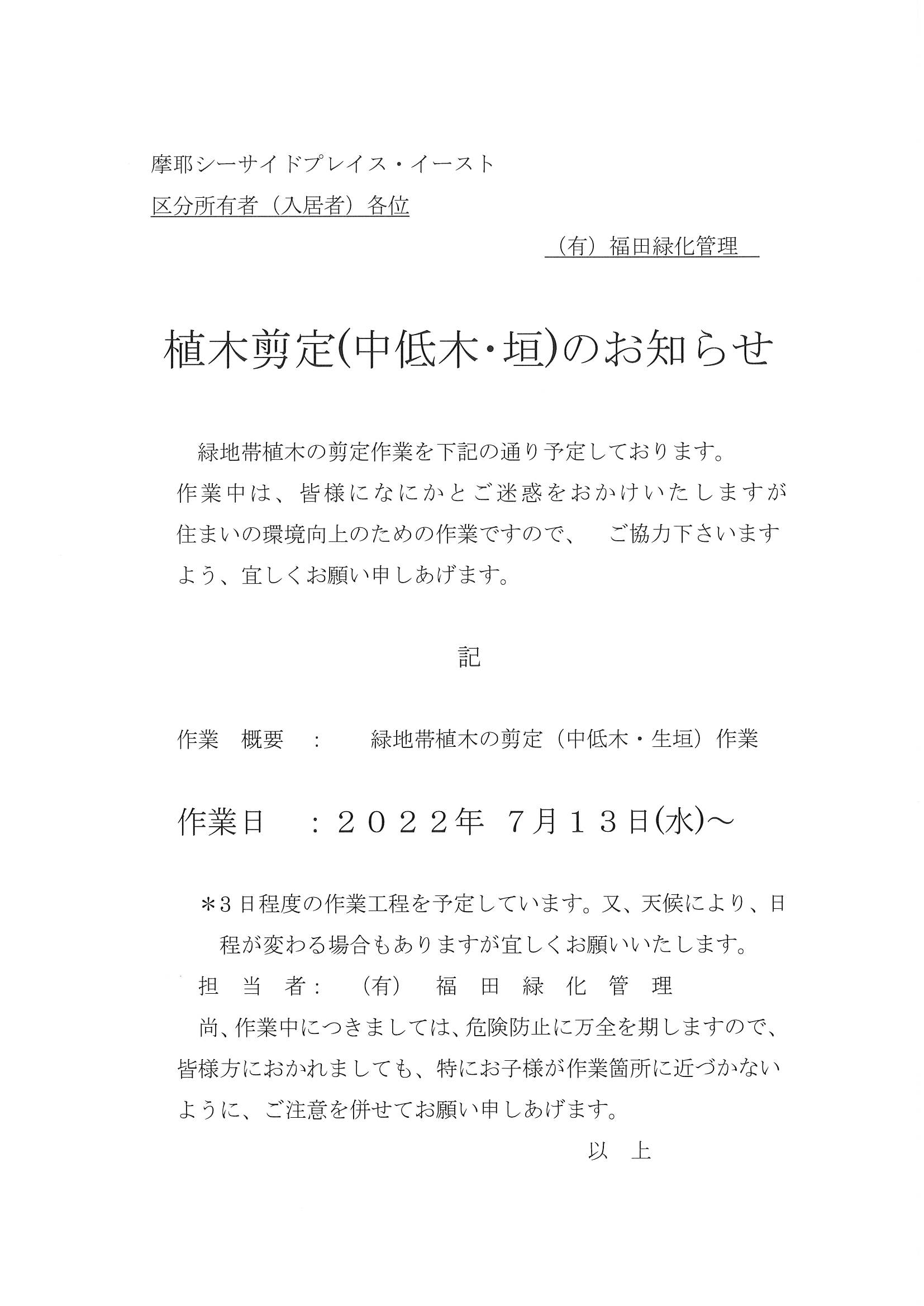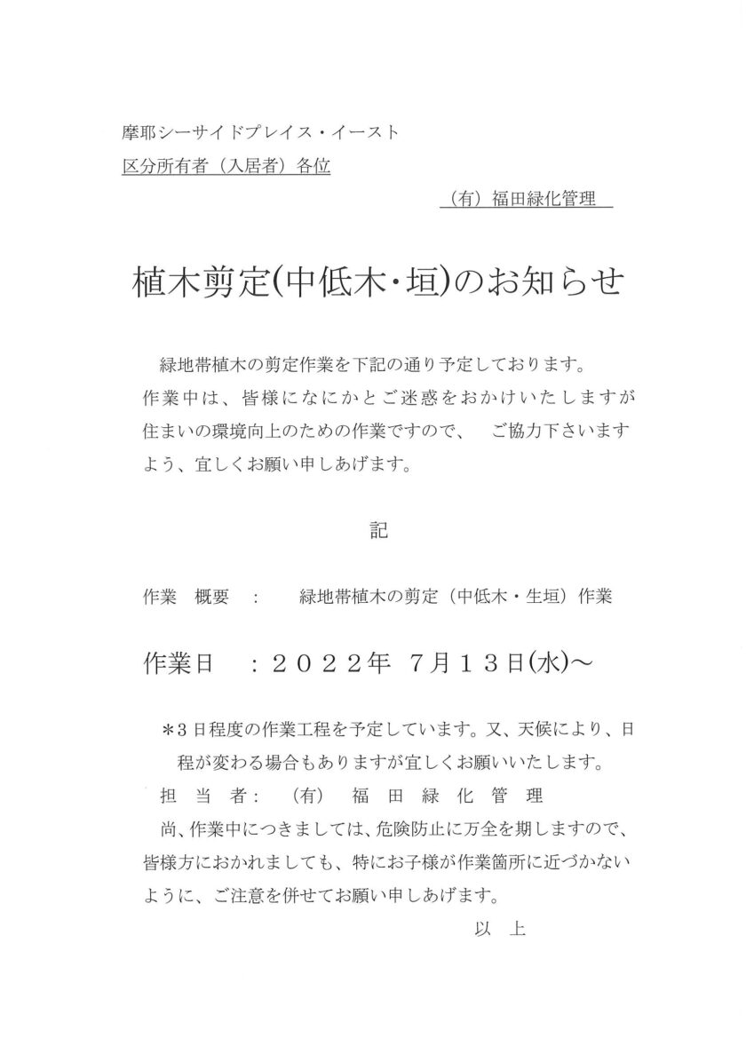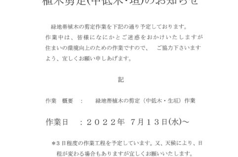 植木選定(中低木・垣)のお知らせ
