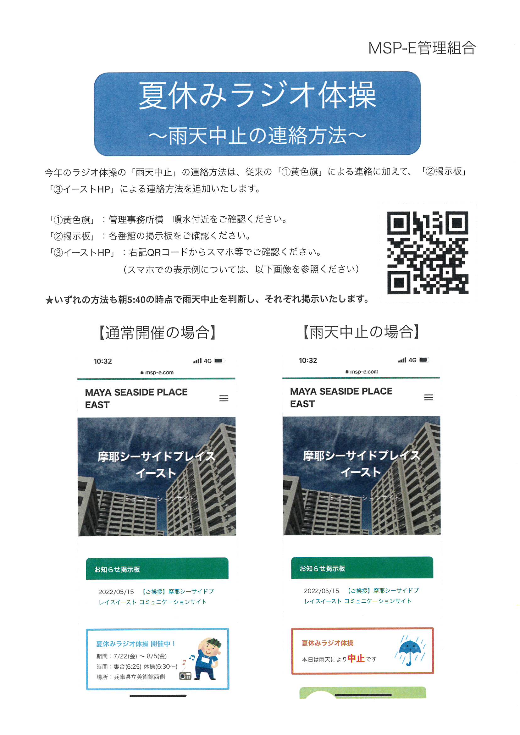 夏休みラジオ体操(雨天中止の連絡方法)