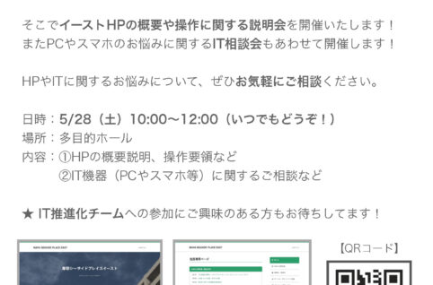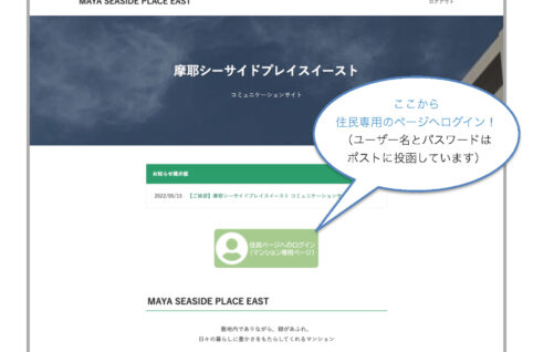 【ご挨拶】摩耶シーサイドプレイスイースト コミュニケーションサイト 2022年5月15日 by 管理者 MSP-E ホームページ開設について 居住者 各位 MSP-E管理組合理事長 小林 徹也 日頃は管理組合の活動にご協力いただき、ありがとうございます。 コミュニティ活動検討委員会を中心に有志の皆様にご協力いただき、2021年度にIT...