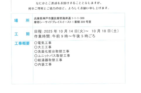 [1番館]リフォーム工事のお知らせ