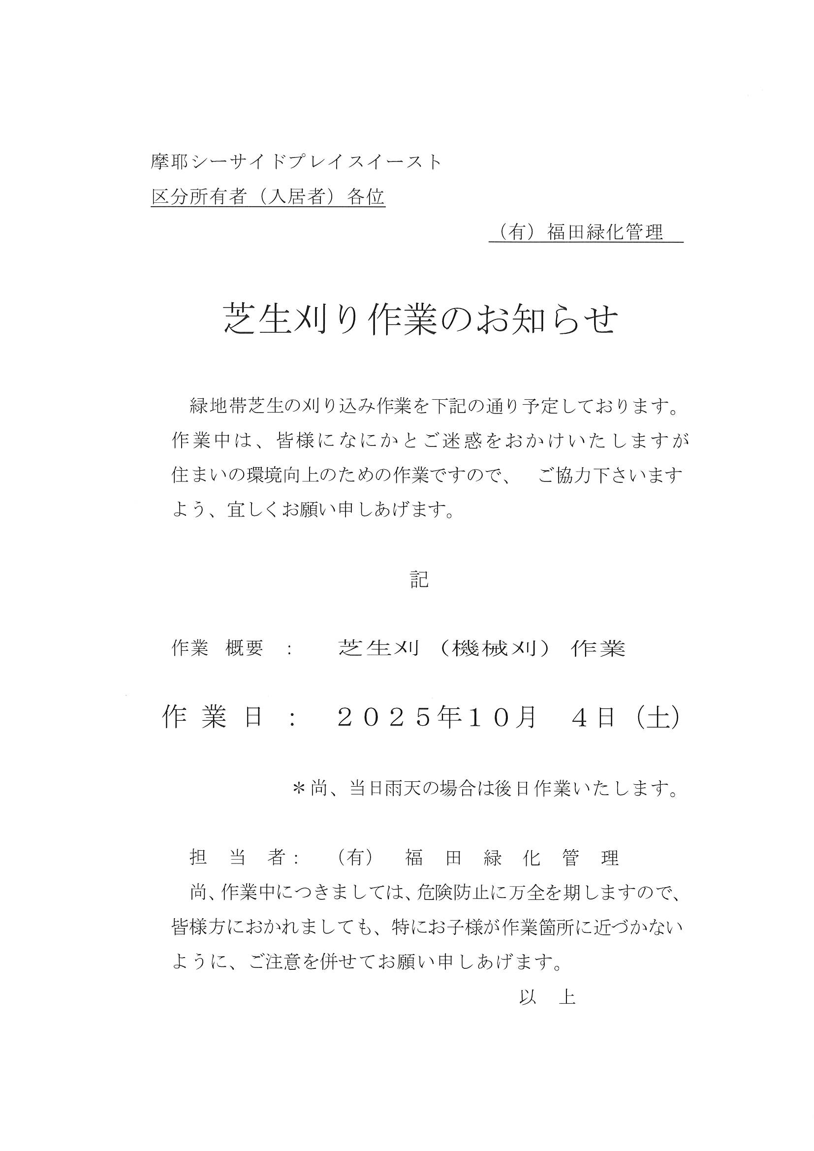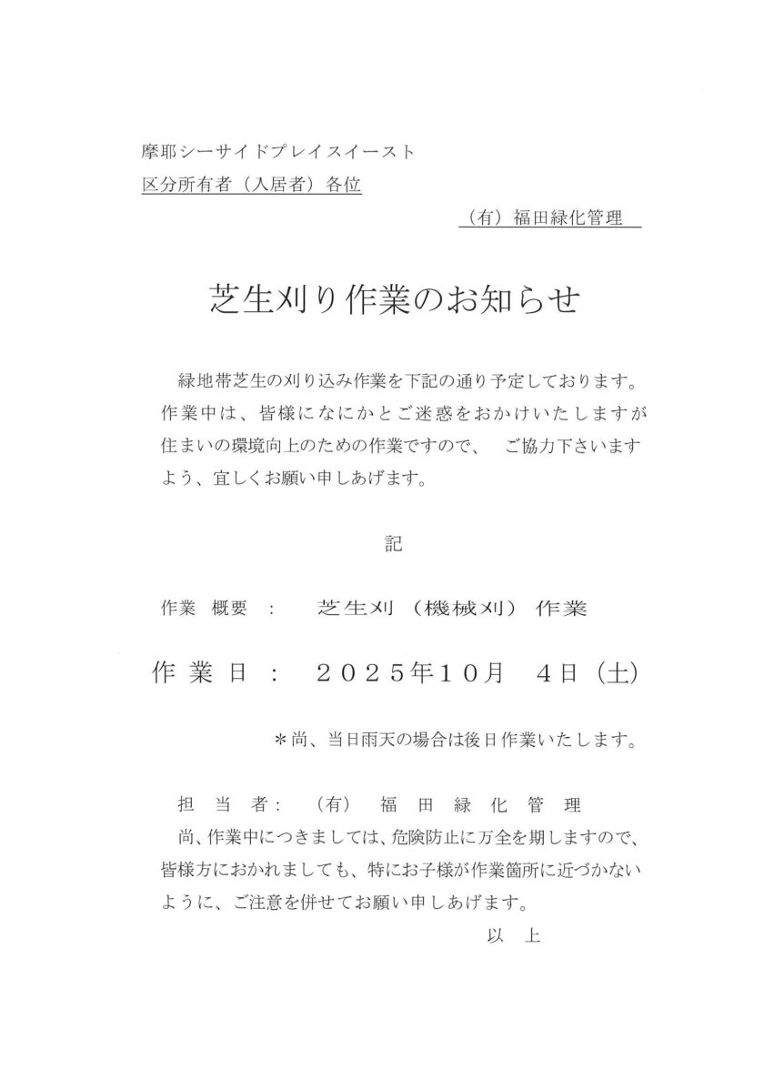 芝刈り作業のお知らせ