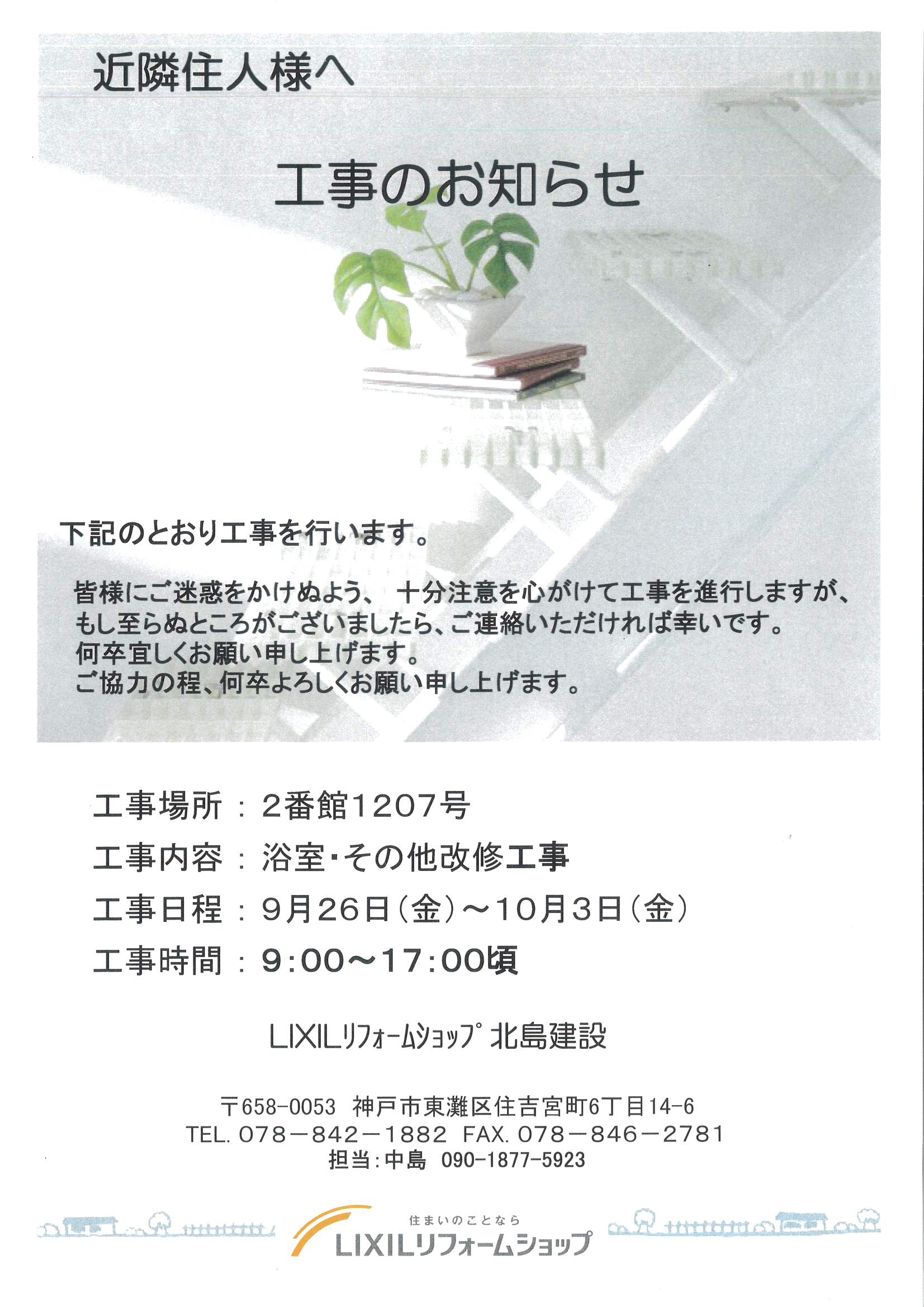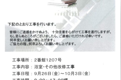 [2番館]リフォーム工事のお知らせ