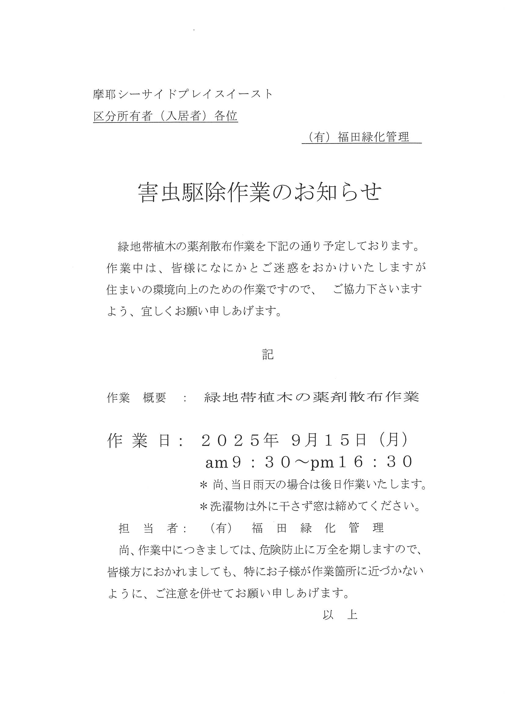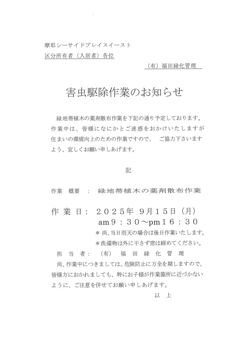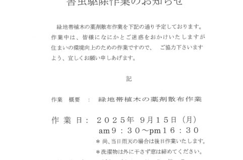 害虫駆除作業のお知らせ