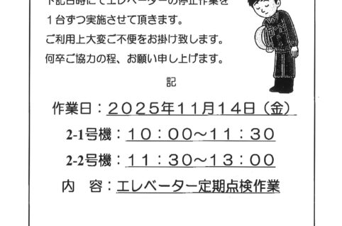 [2番館]エレベーター定期点検作業のお知らせ