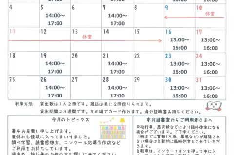 なだのはま小学校市民図書室ニュース8月号