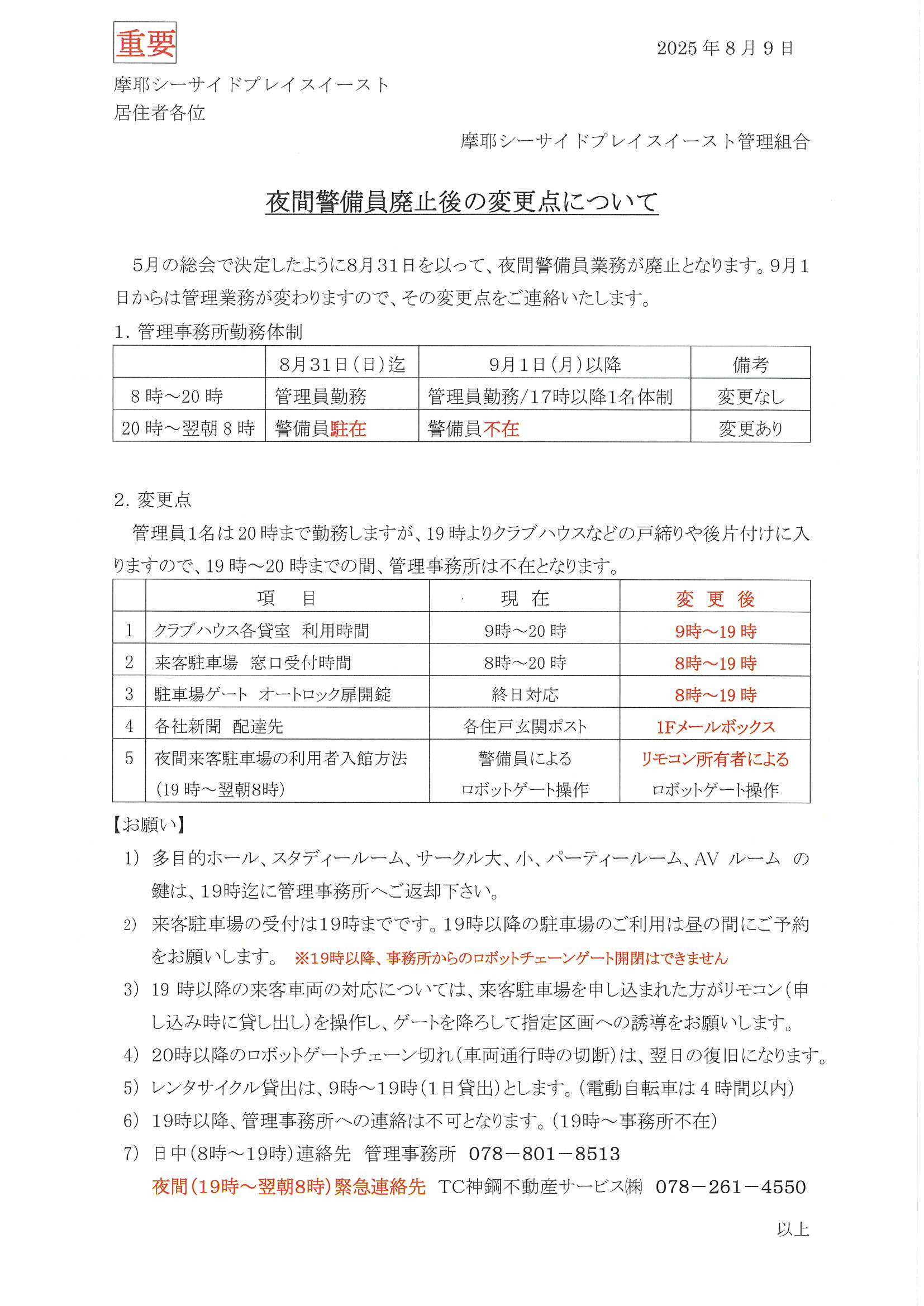 夜間警備員廃止後の変更点について