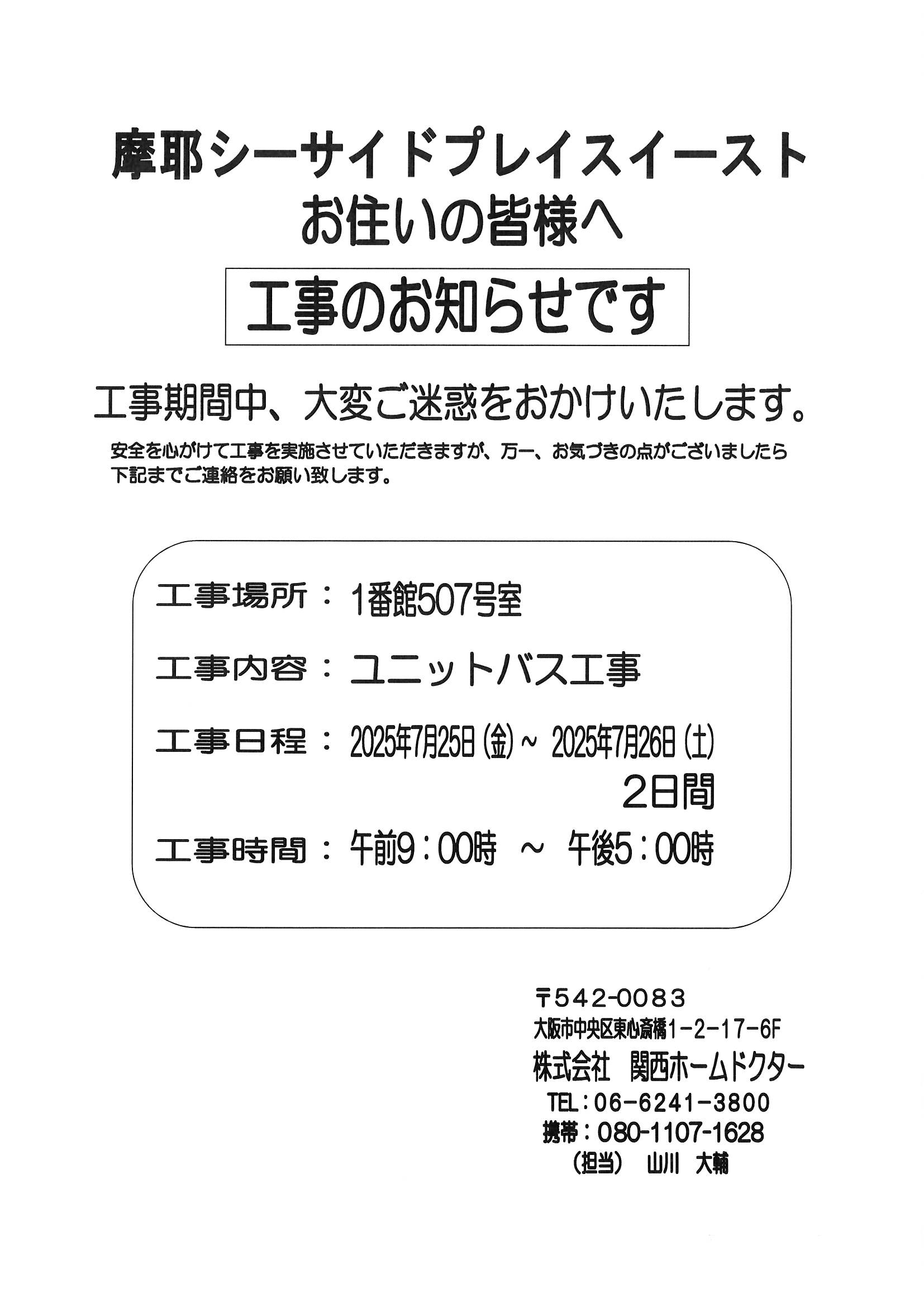 [1番館]リフォーム工事のお知らせ