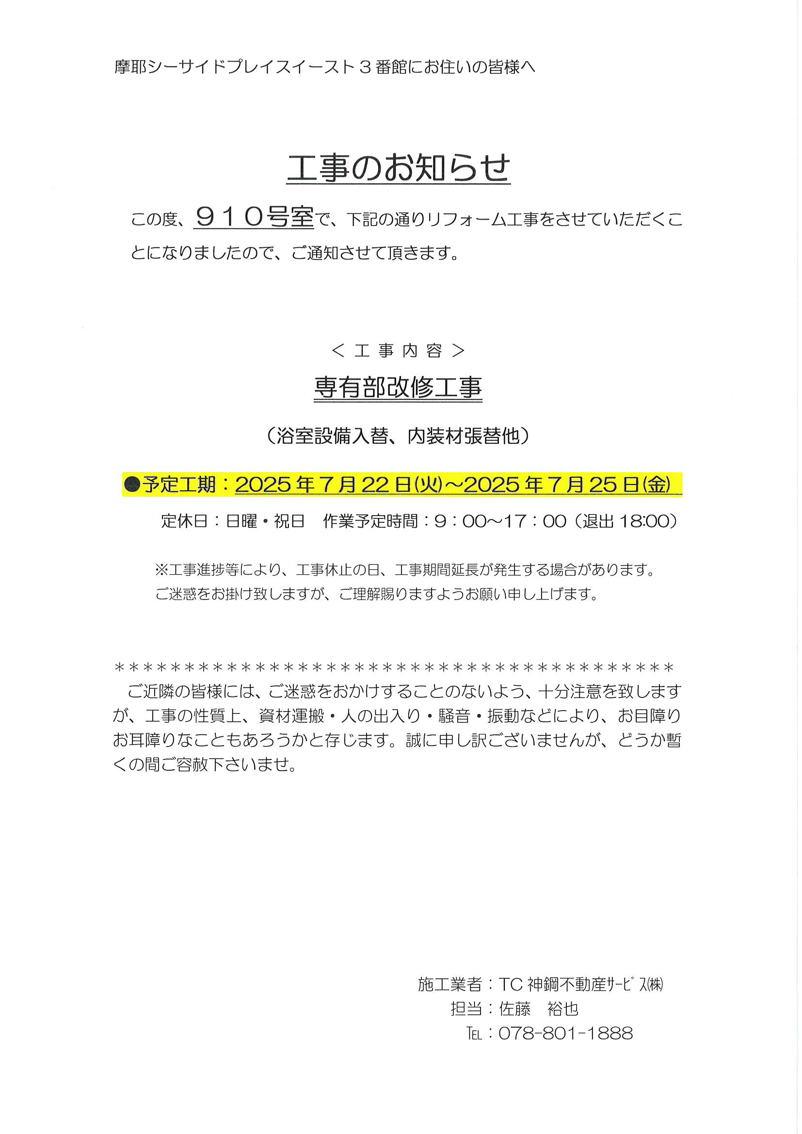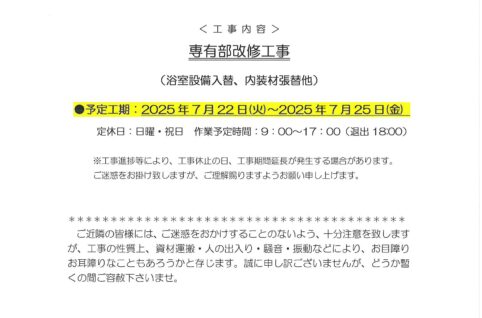 [3番館]リフォーム工事のお知らせ