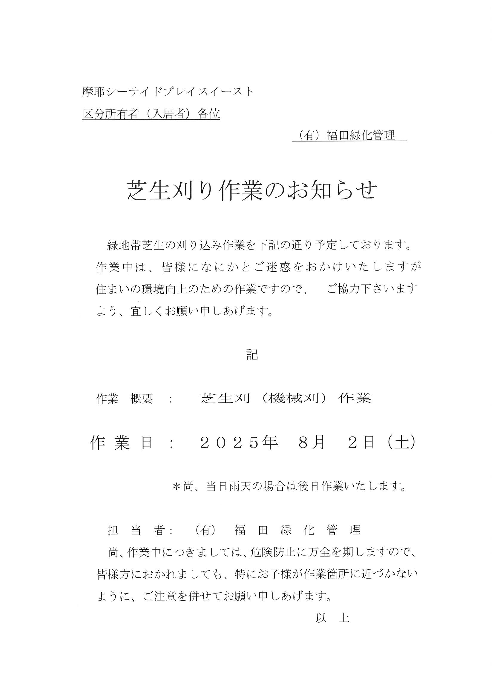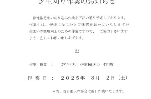 8月2日(土)芝生刈り作業のお知らせ