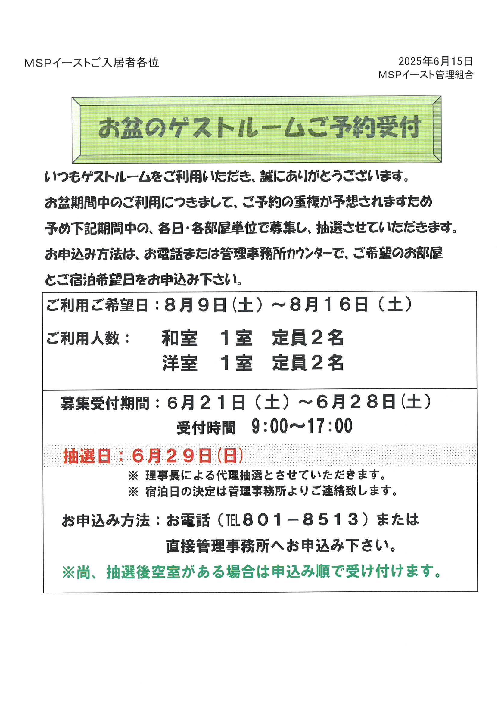 お盆のゲストルームご予約受付