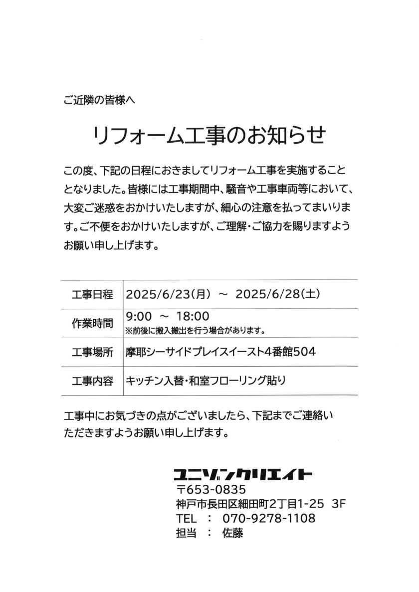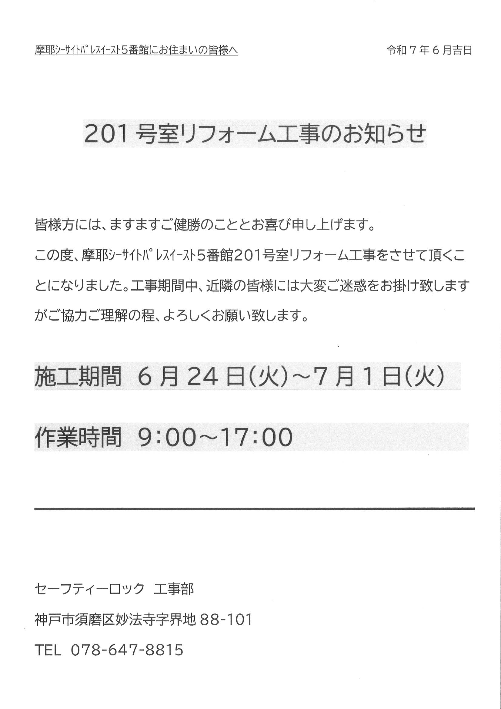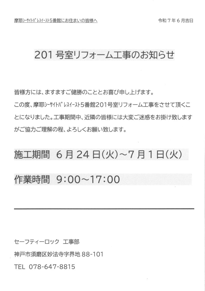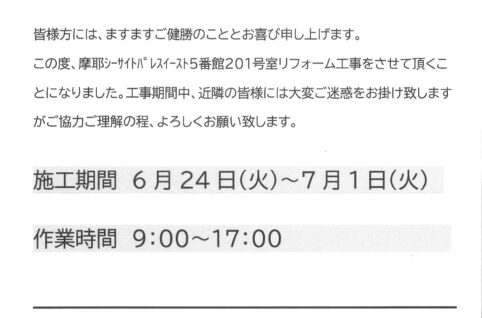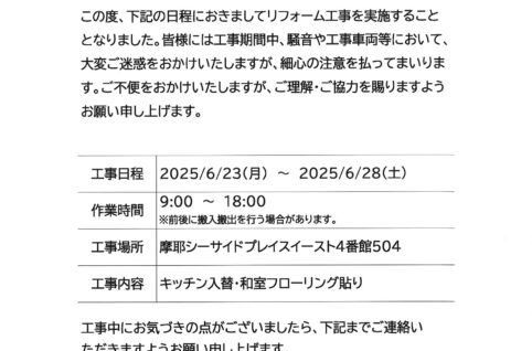 [5番館]リフォーム工事のお知らせ