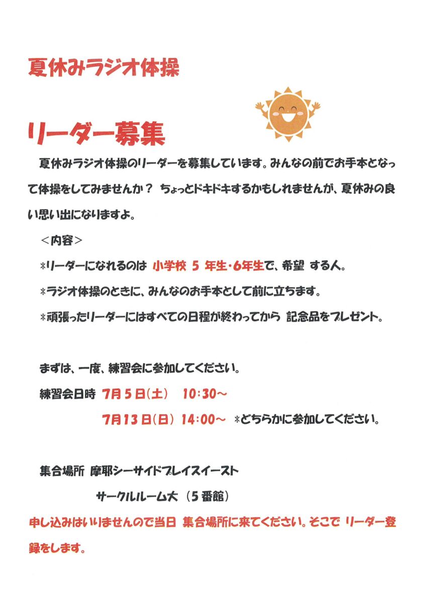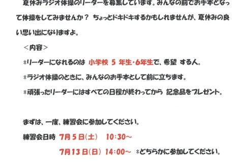 夏休みラジオ体操 リーダー募集