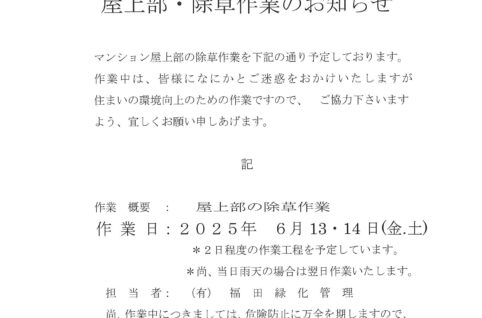 屋上部・除草作業のお知らせ