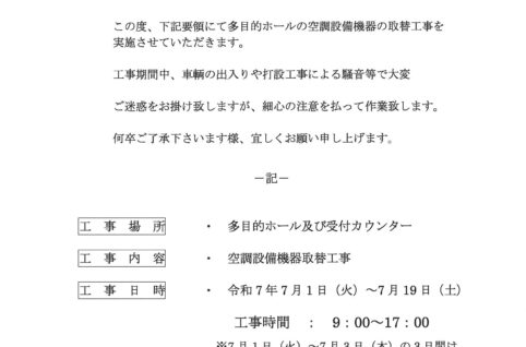 [多目的ホール・受付カウンター]工事のお知らせ