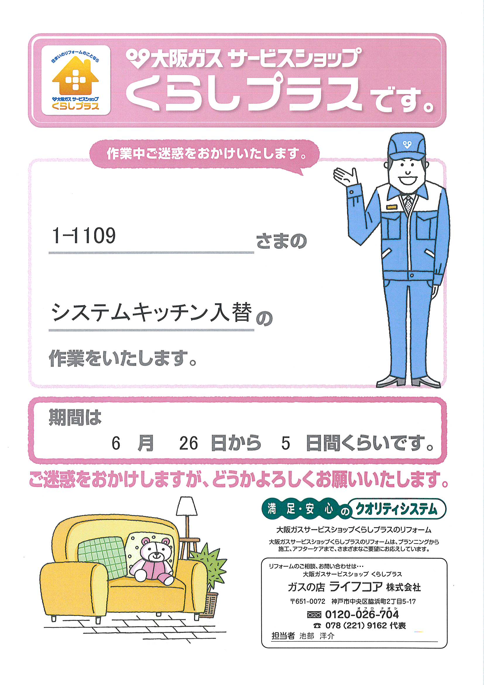 [1番館]リフォーム工事のお知らせ