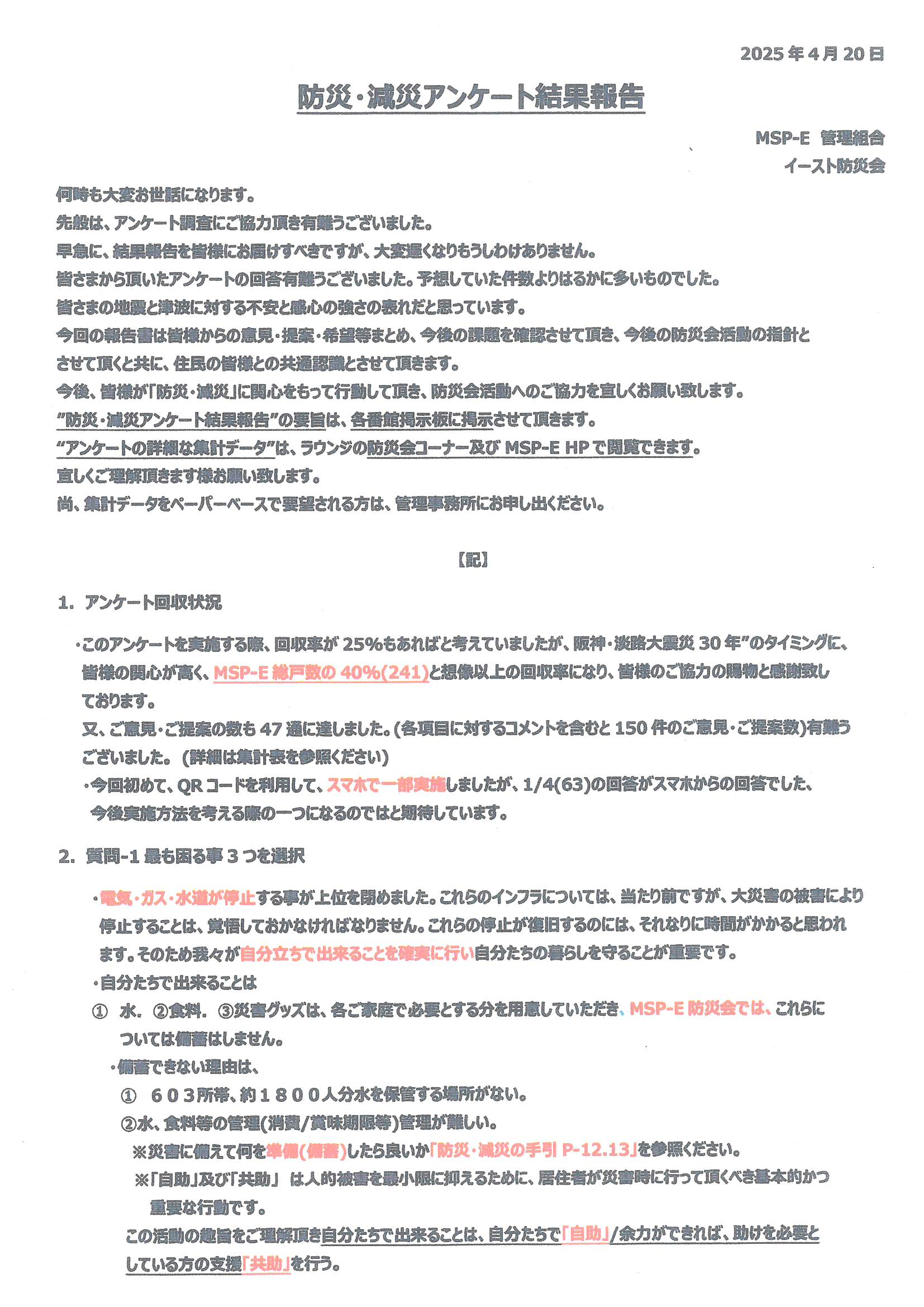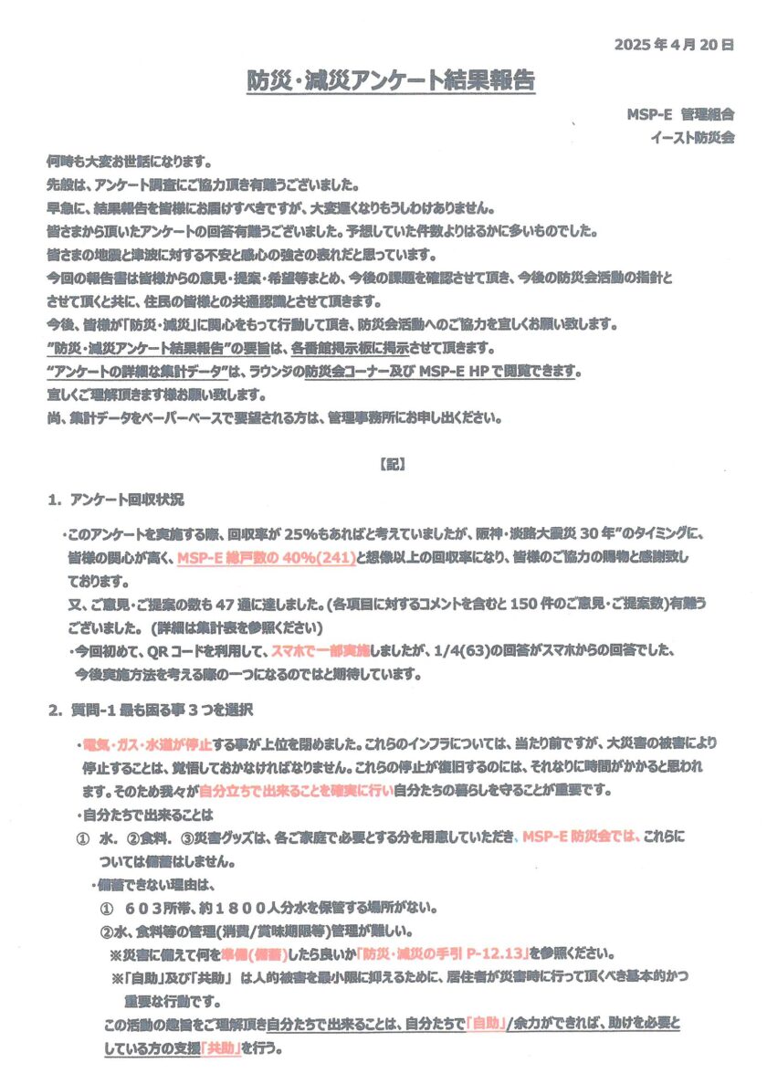 防災・減災アンケート結果報告
