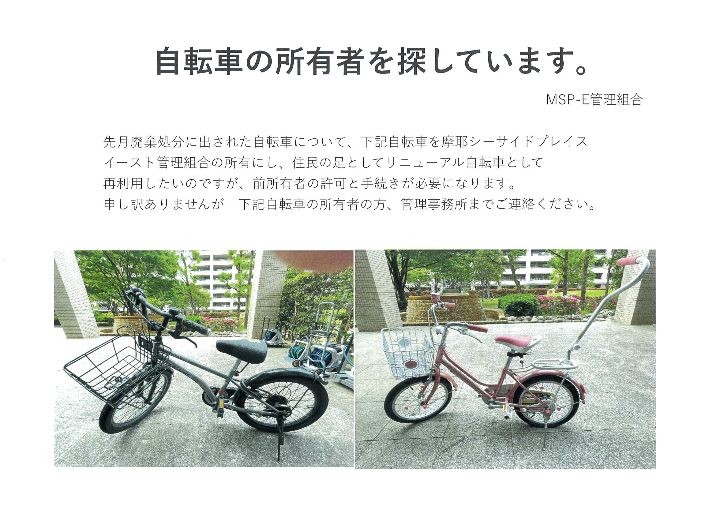 自転車の所有者を探しています。