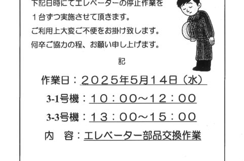 5月14日(水)3番館ELV部品交換作業