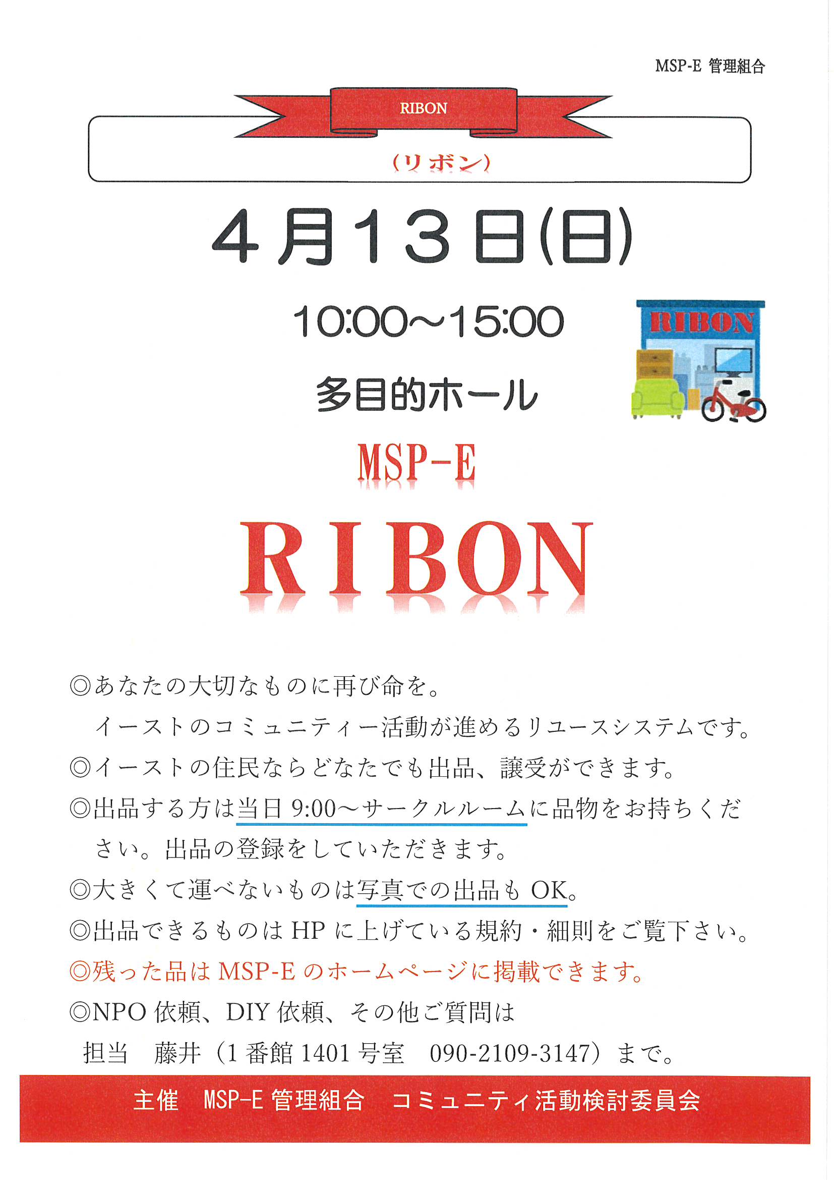 4月13日(日)10:00~RIBON