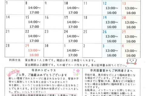 なだのはま小学校市民図書室ニュース4月号