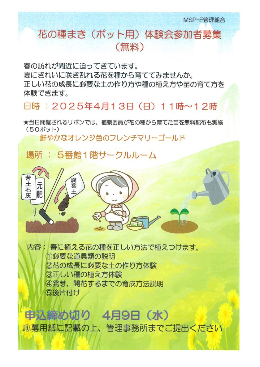花の種まき(ポット用)体験会参加者募集(無料)