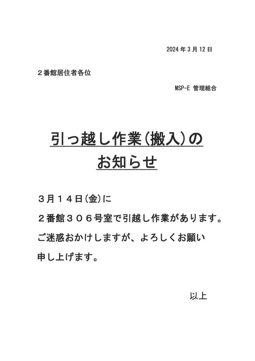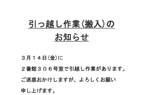 [2番館]引っ越し作業のお知らせ
