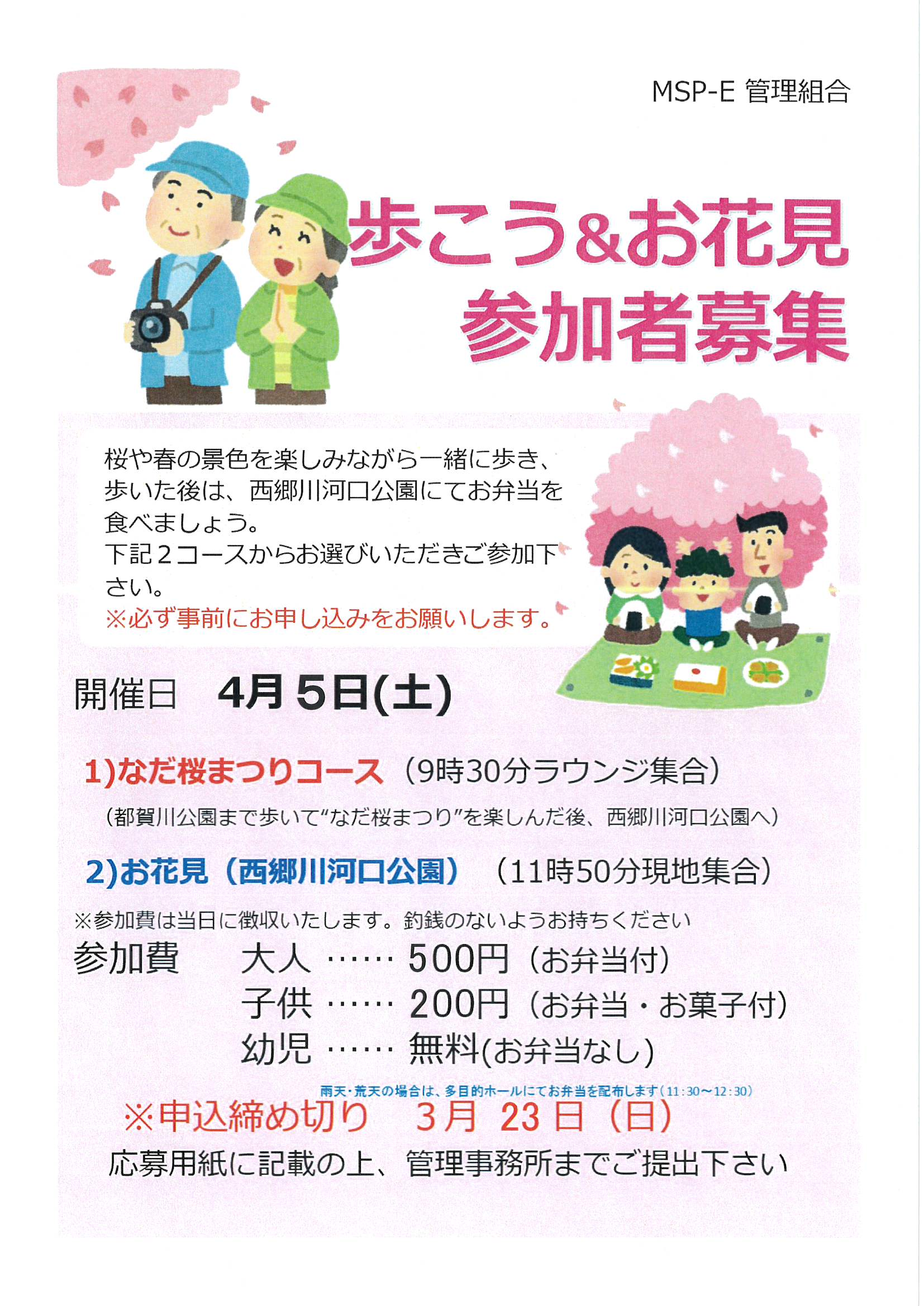 4月5日(土)歩こう&お花見 参加者募集