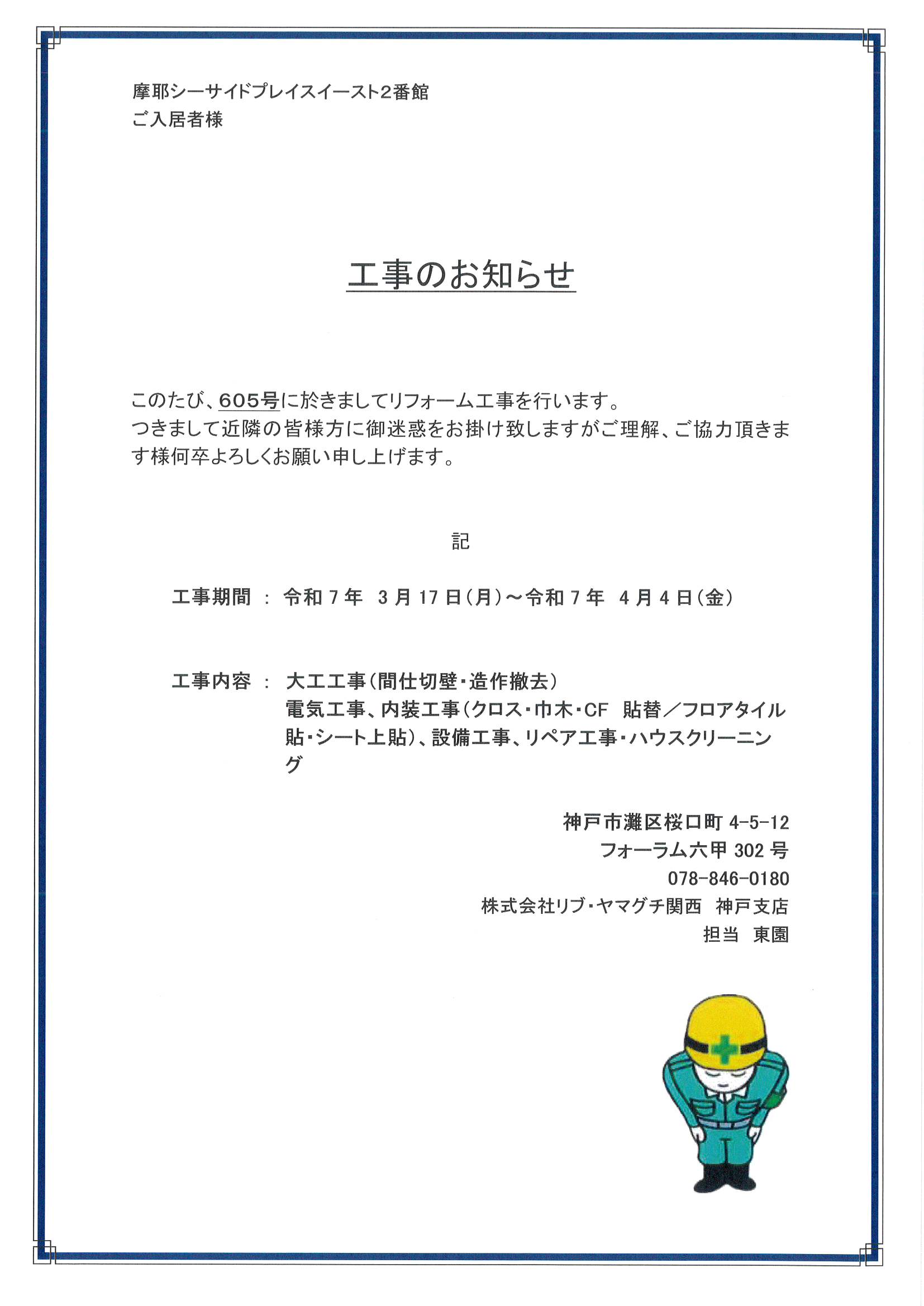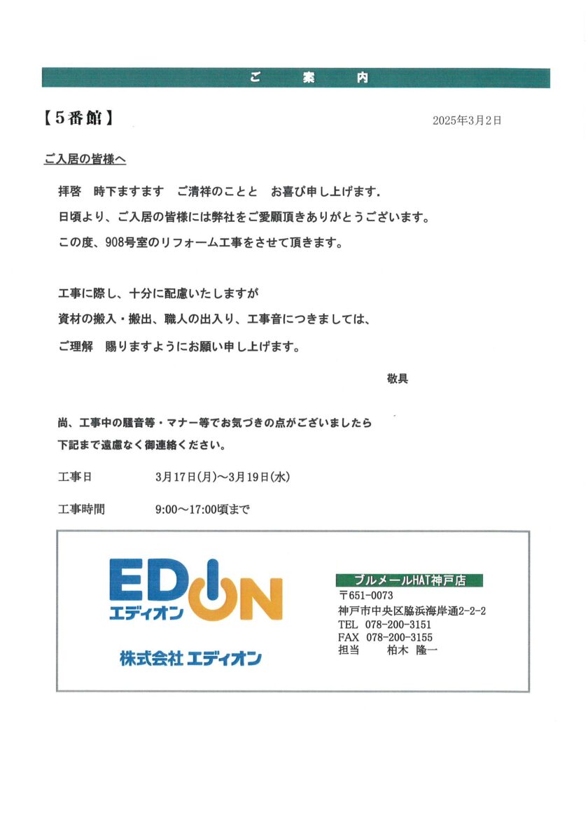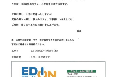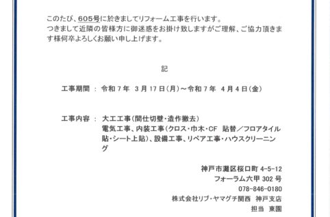 [5番館]リフォーム工事のお知らせ