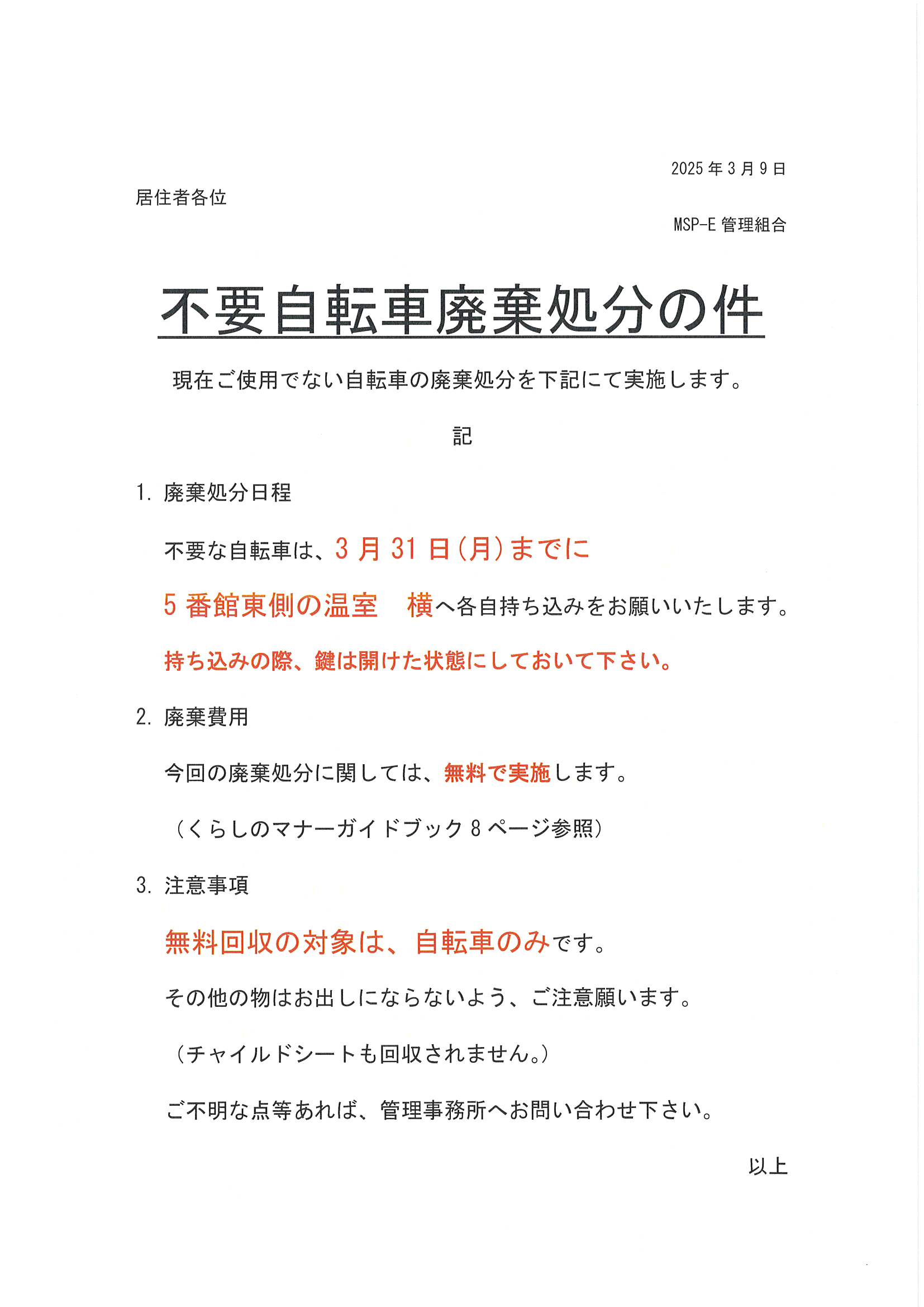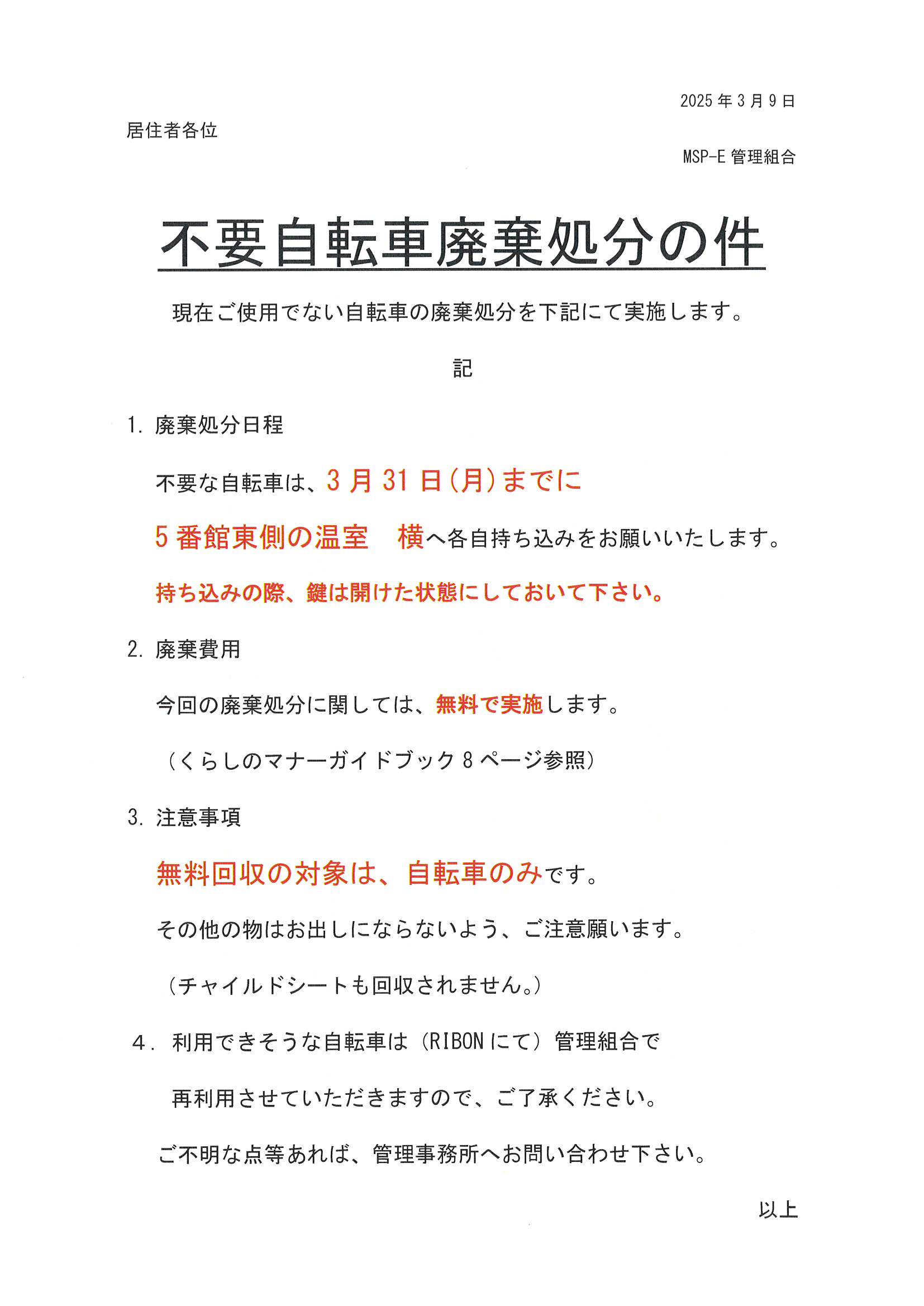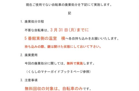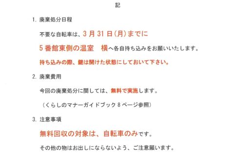 不要自転車廃棄処分の件