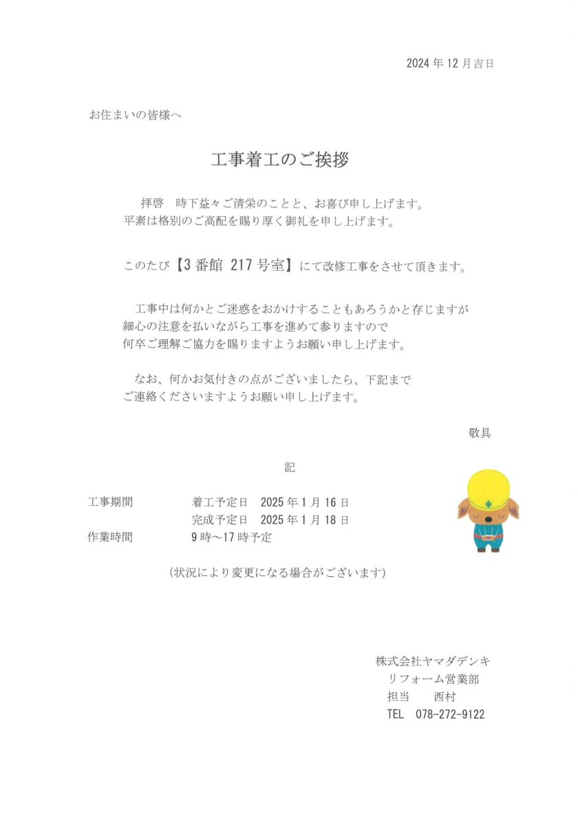 [3番館]リフォーム工事のお知らせ