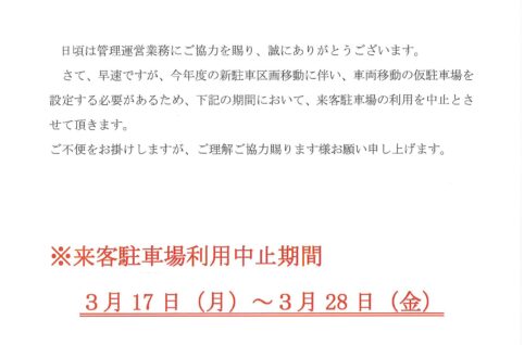3月17日(月)~3月28日(金)来客駐車場 利用中止のご連絡