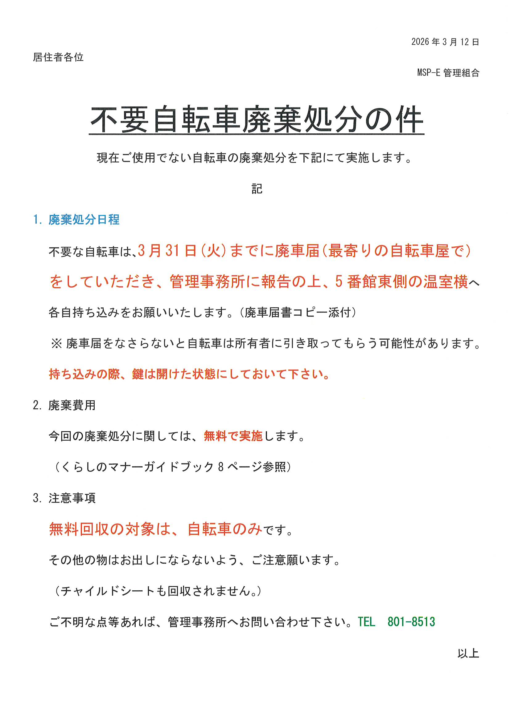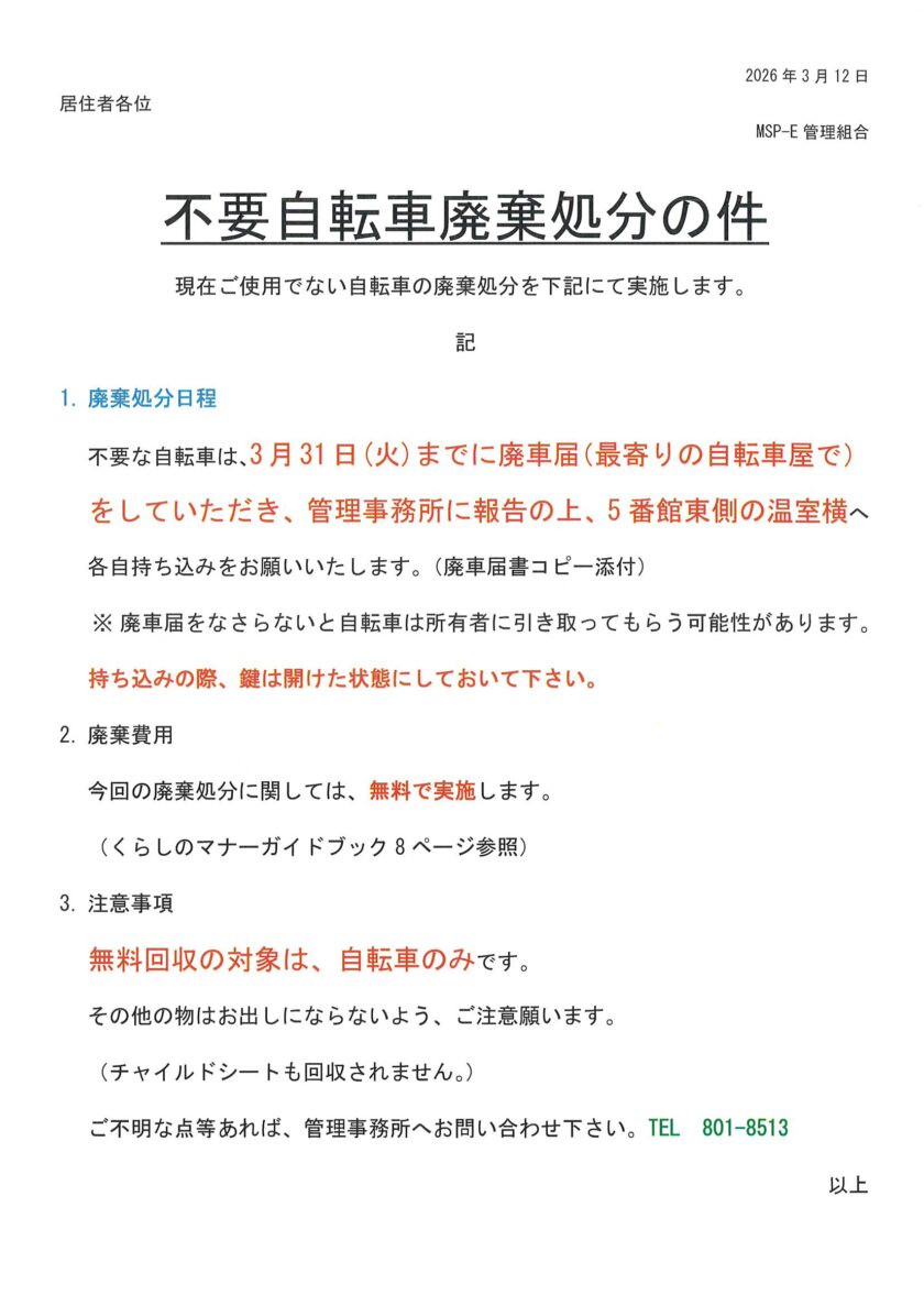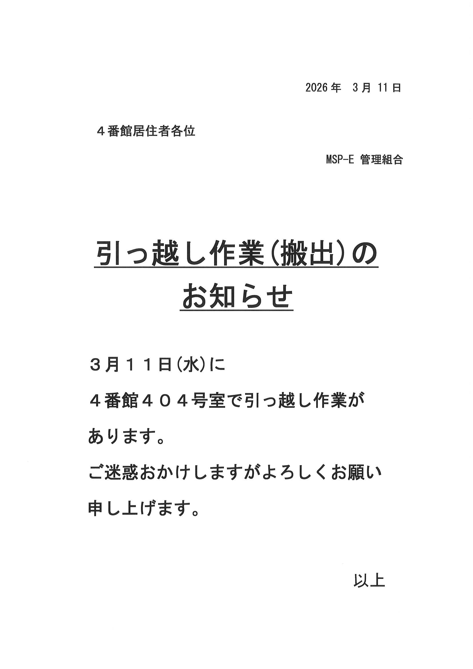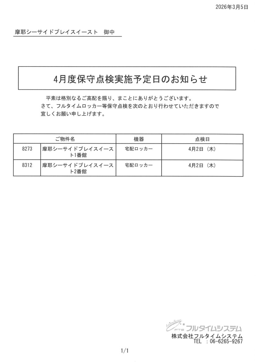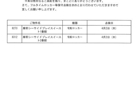 【1・2番館】宅配ロッカー保守点検のお知らせ
