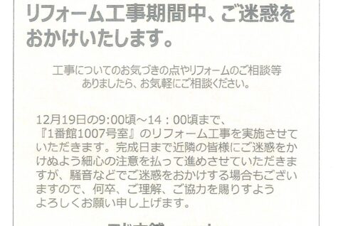 [1番館]リフォーム工事のお知らせ