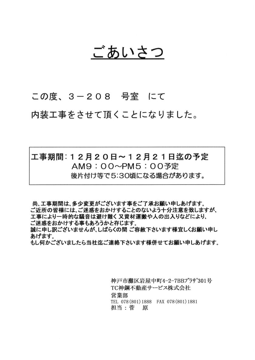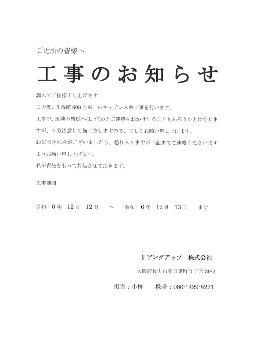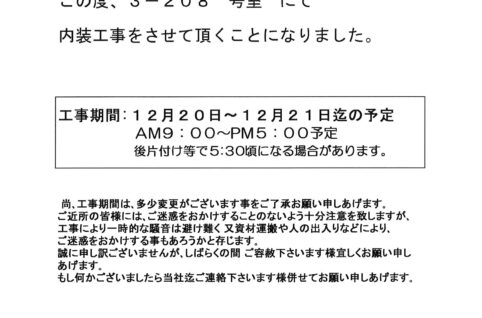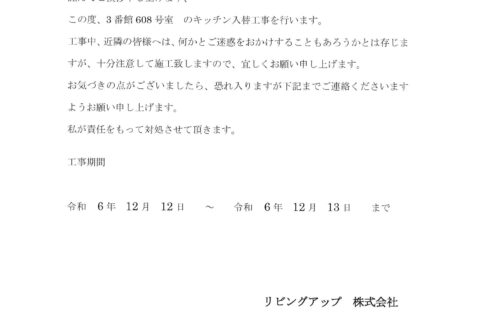 [3番館]リフォーム工事のお知らせ