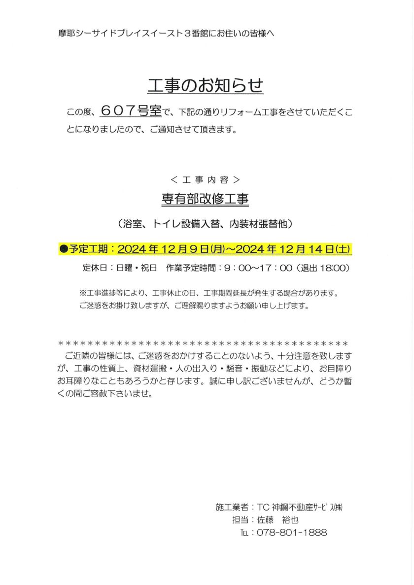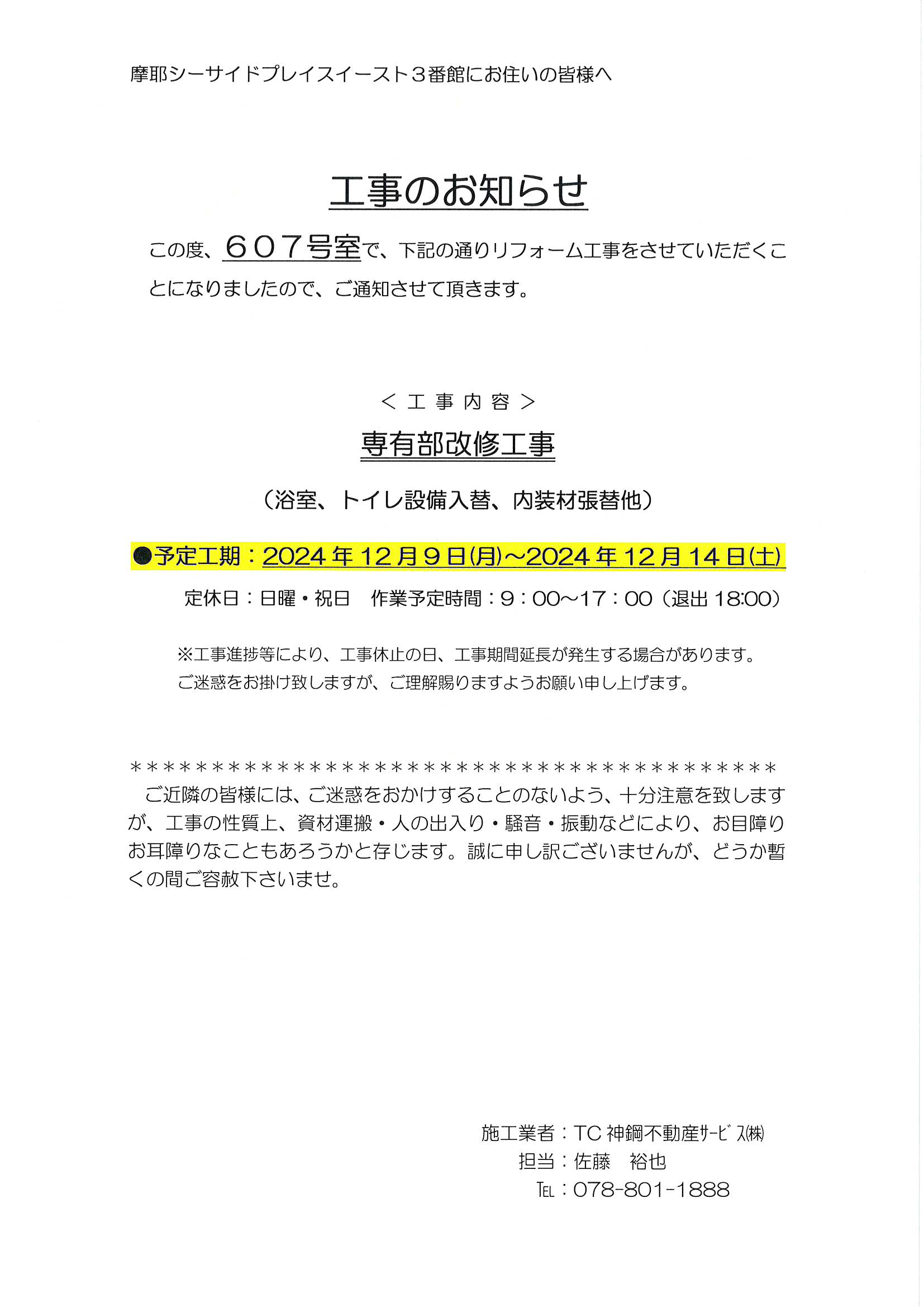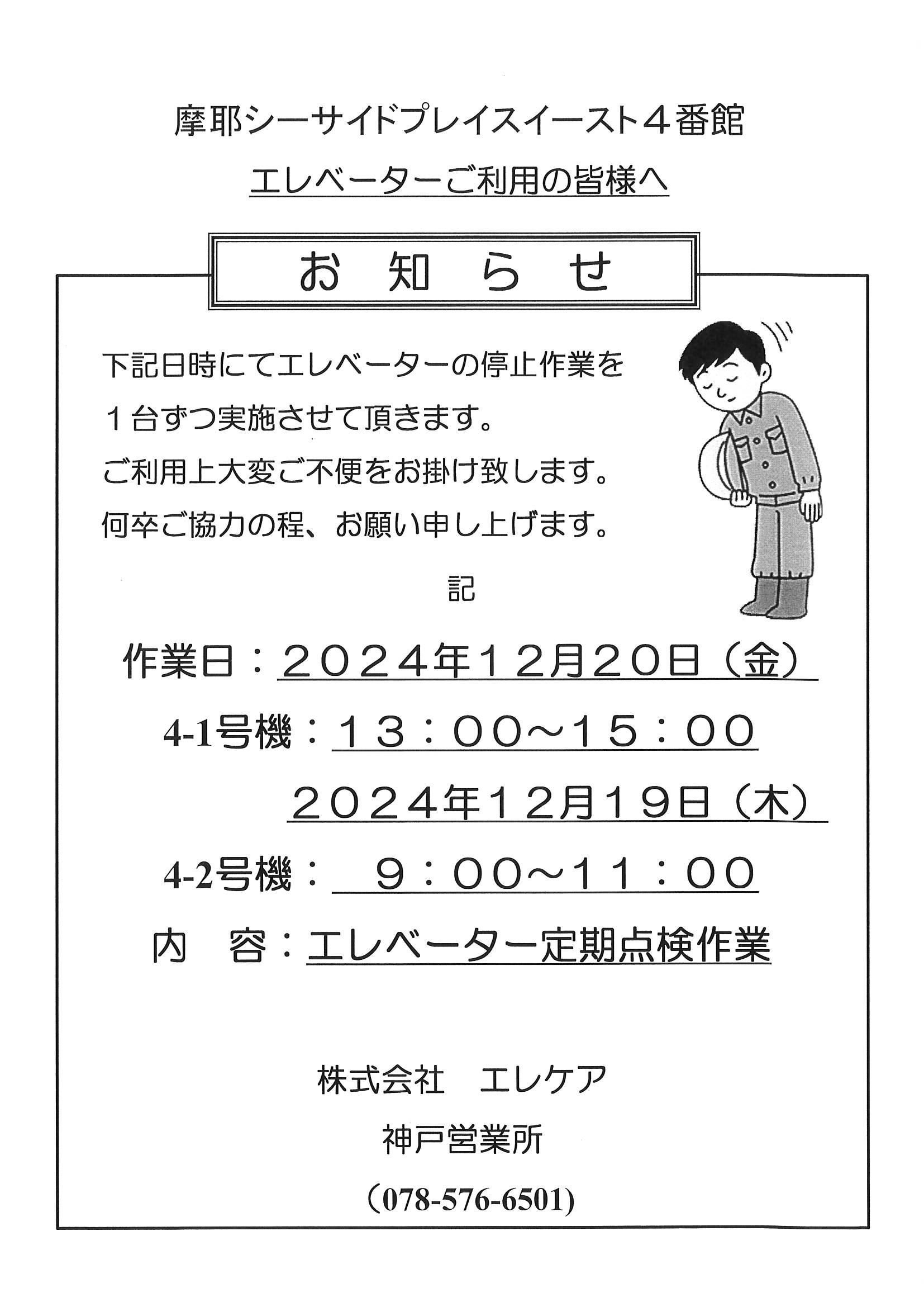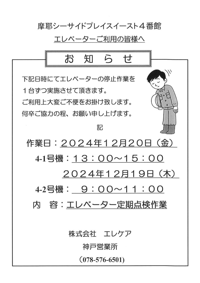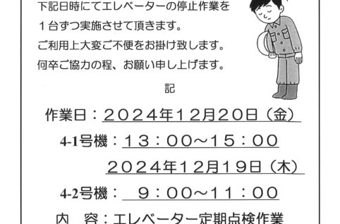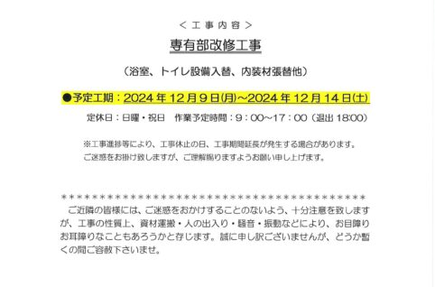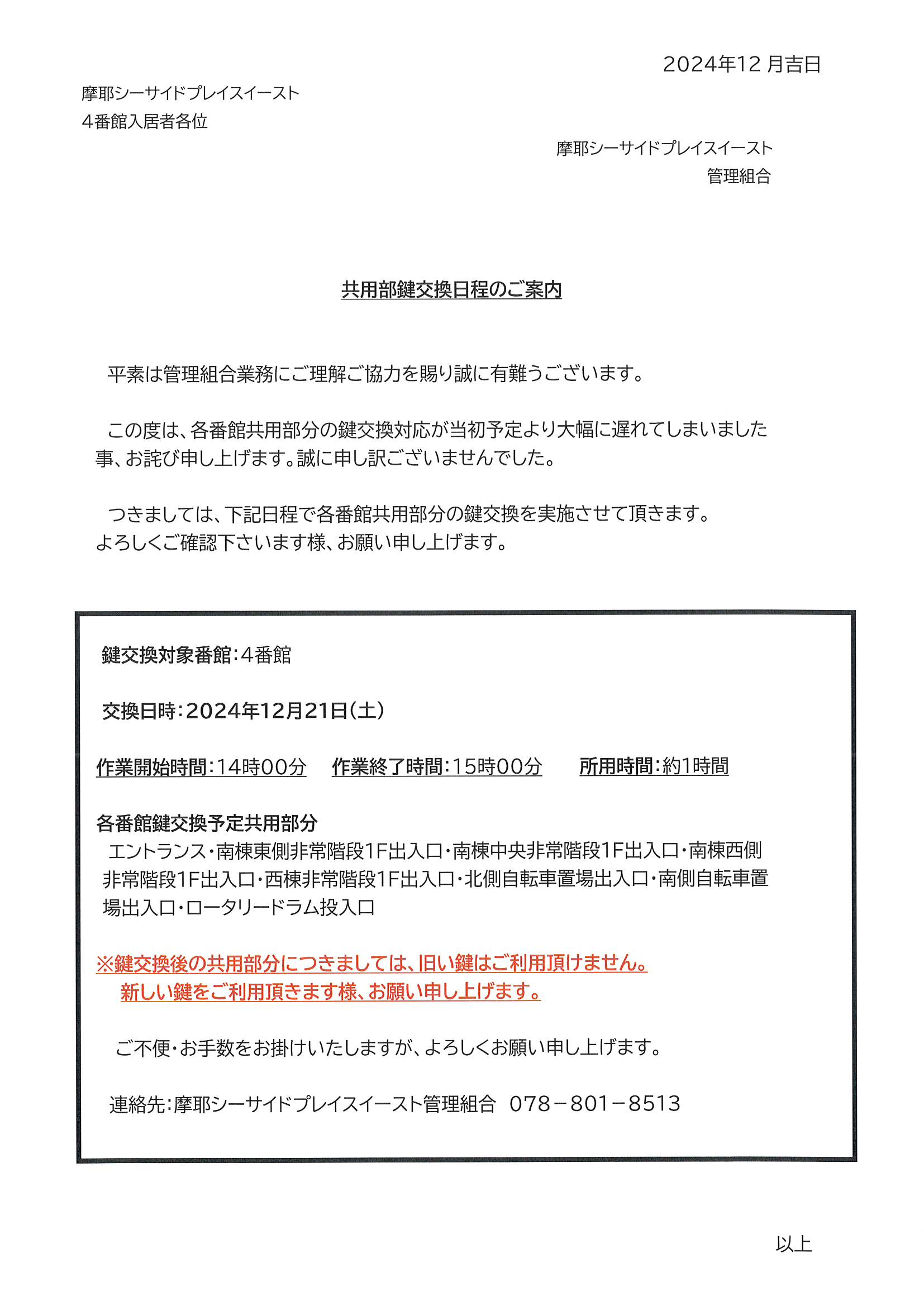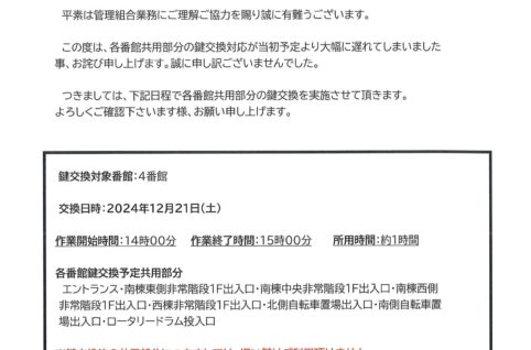 12月21日14:00~4番館共用部鍵交換日程のご案内