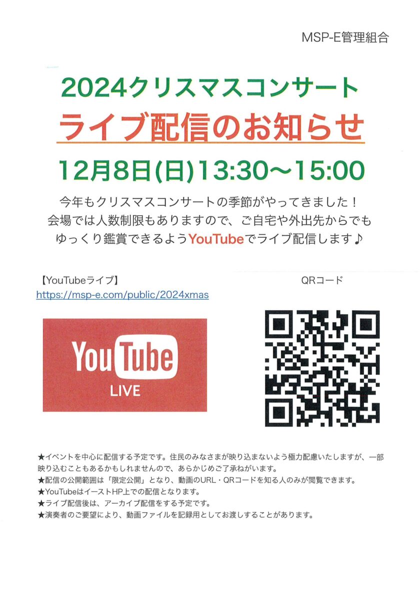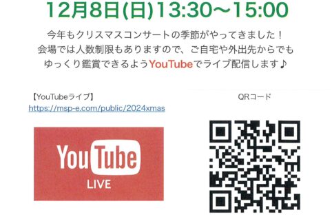 12月8日(日)2024クリスマスコンサート/ライブ配信のお知らせ