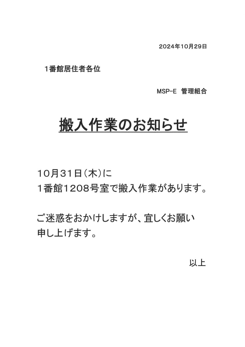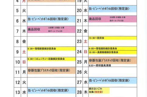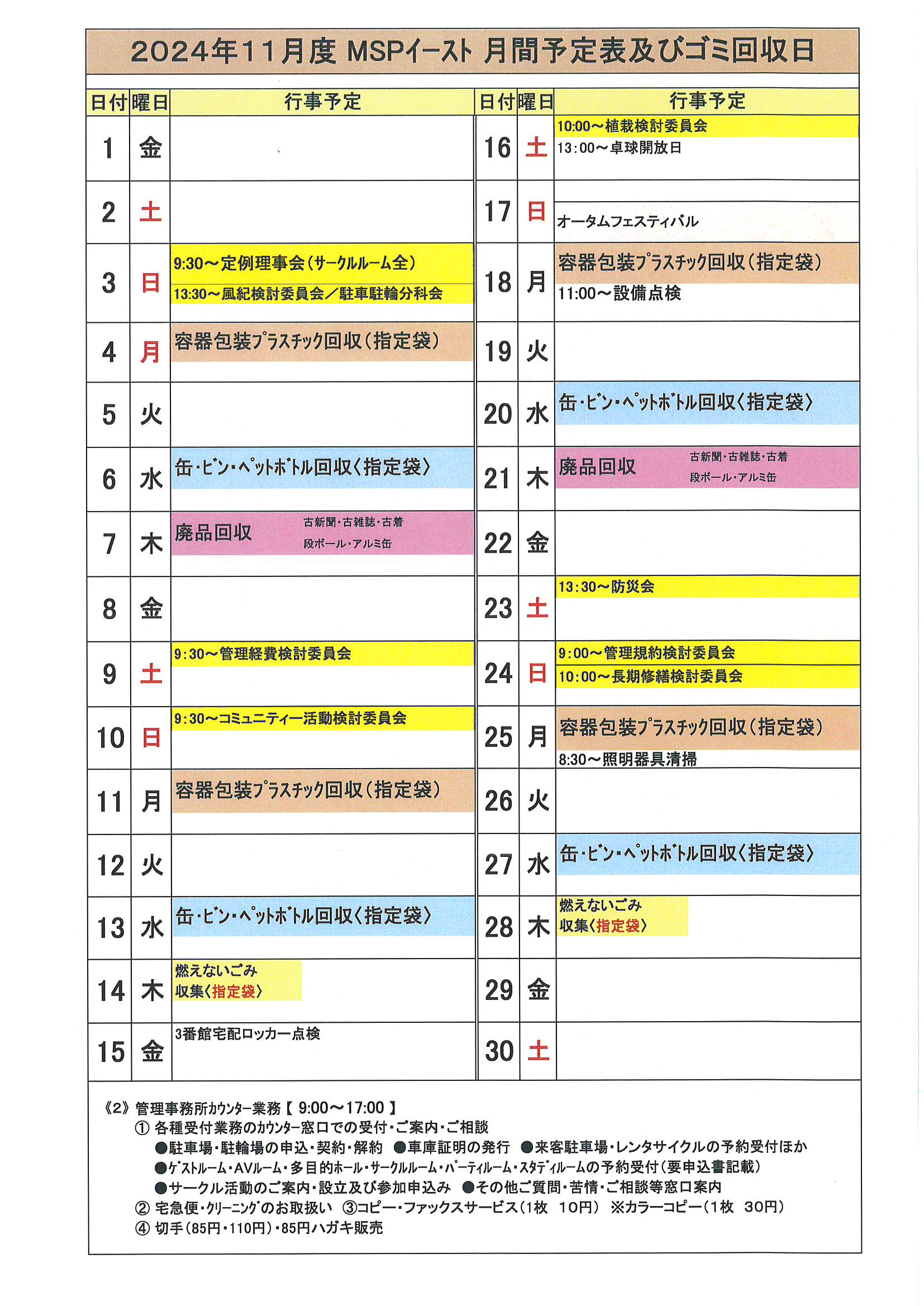 2024年11月度MSP-E月間予定表及びゴミ回収日
