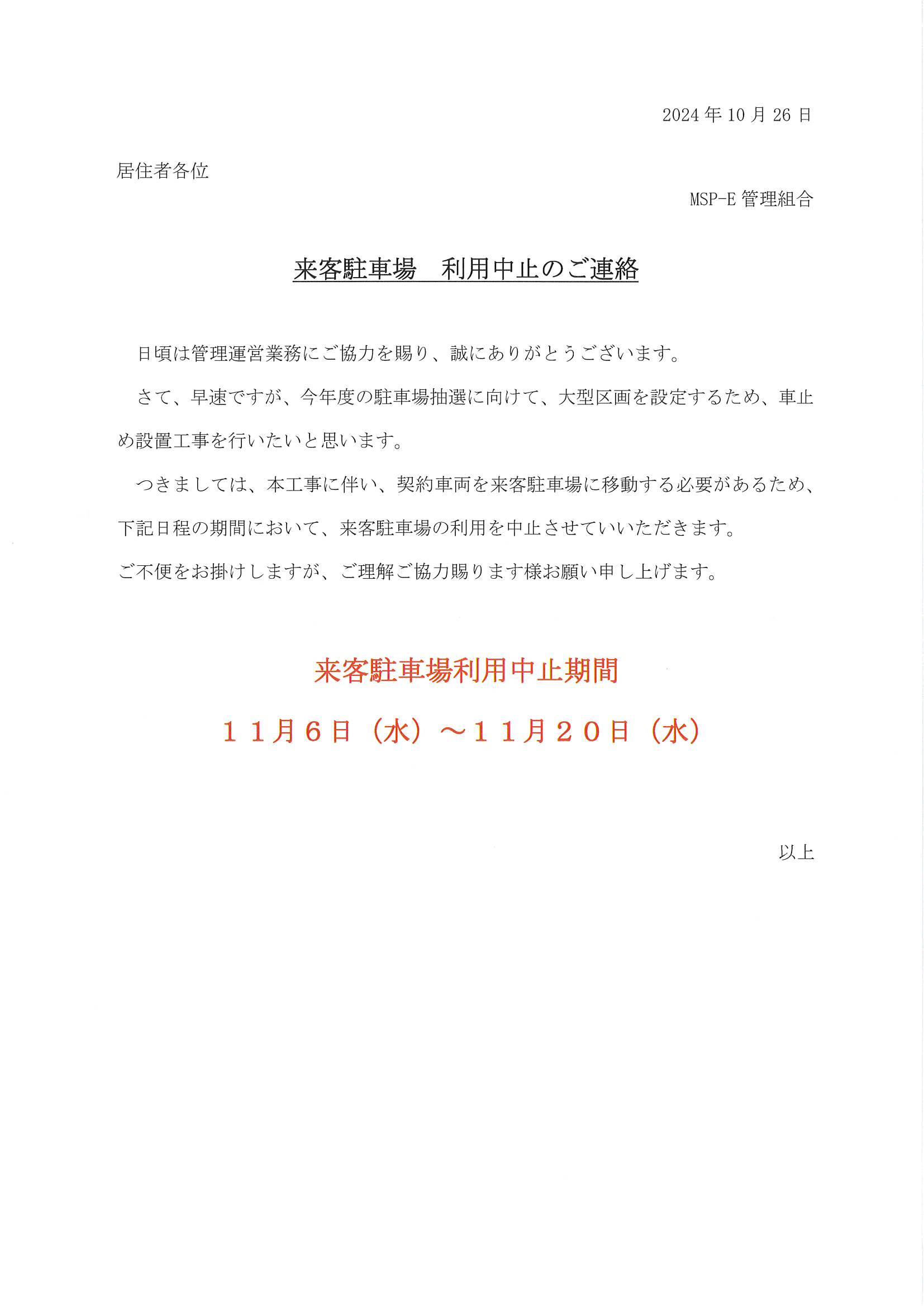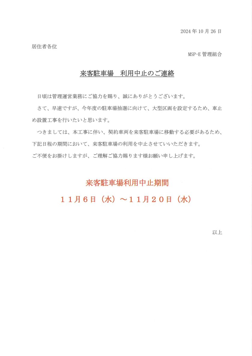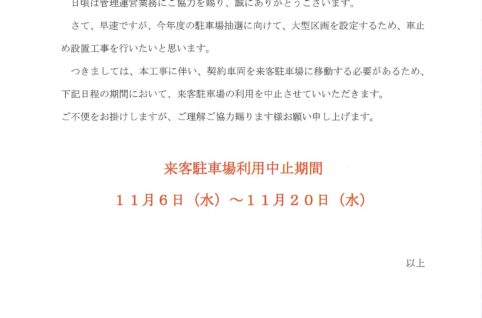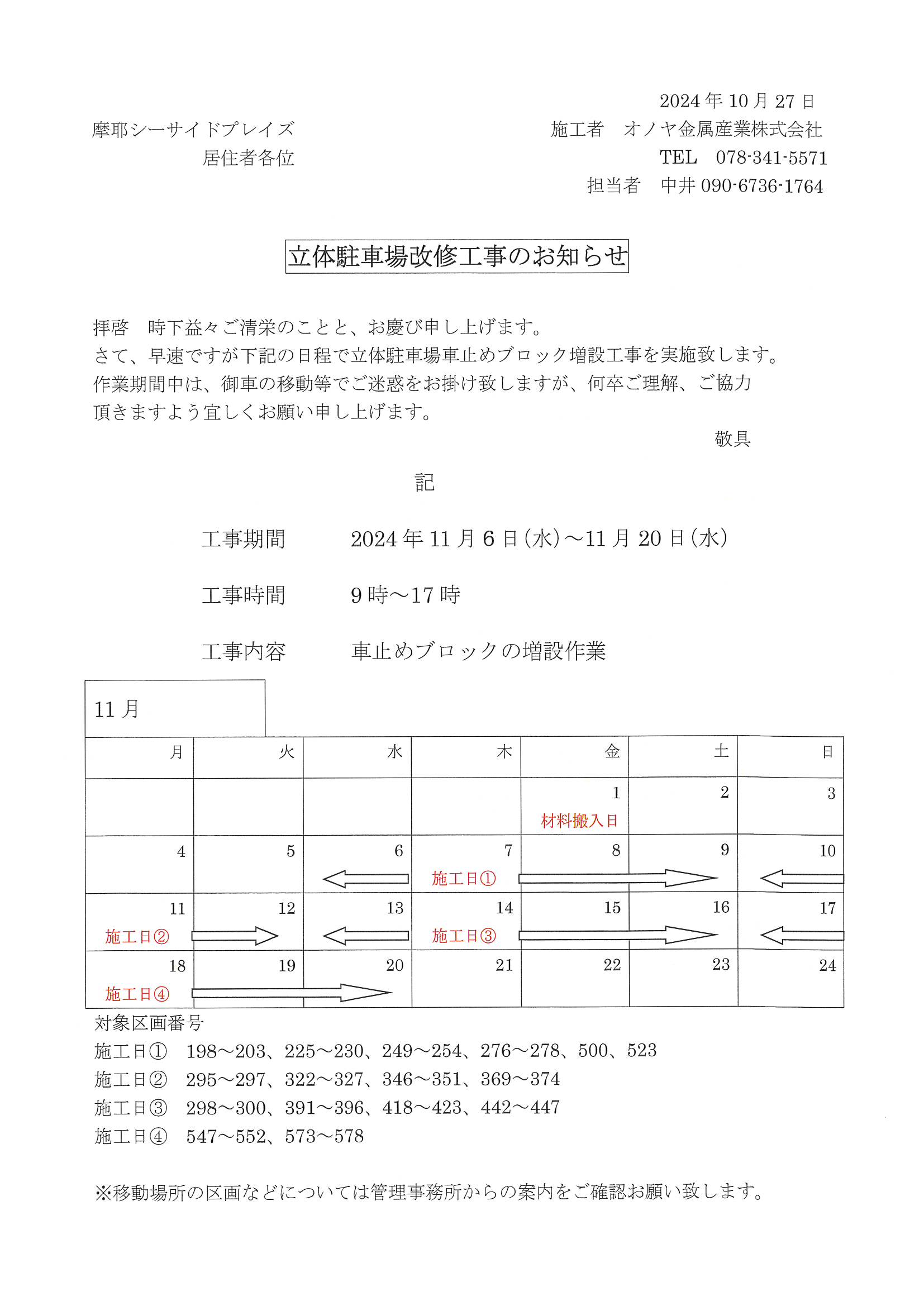 立体駐車場改修工事のお知らせ/11月6日~20日