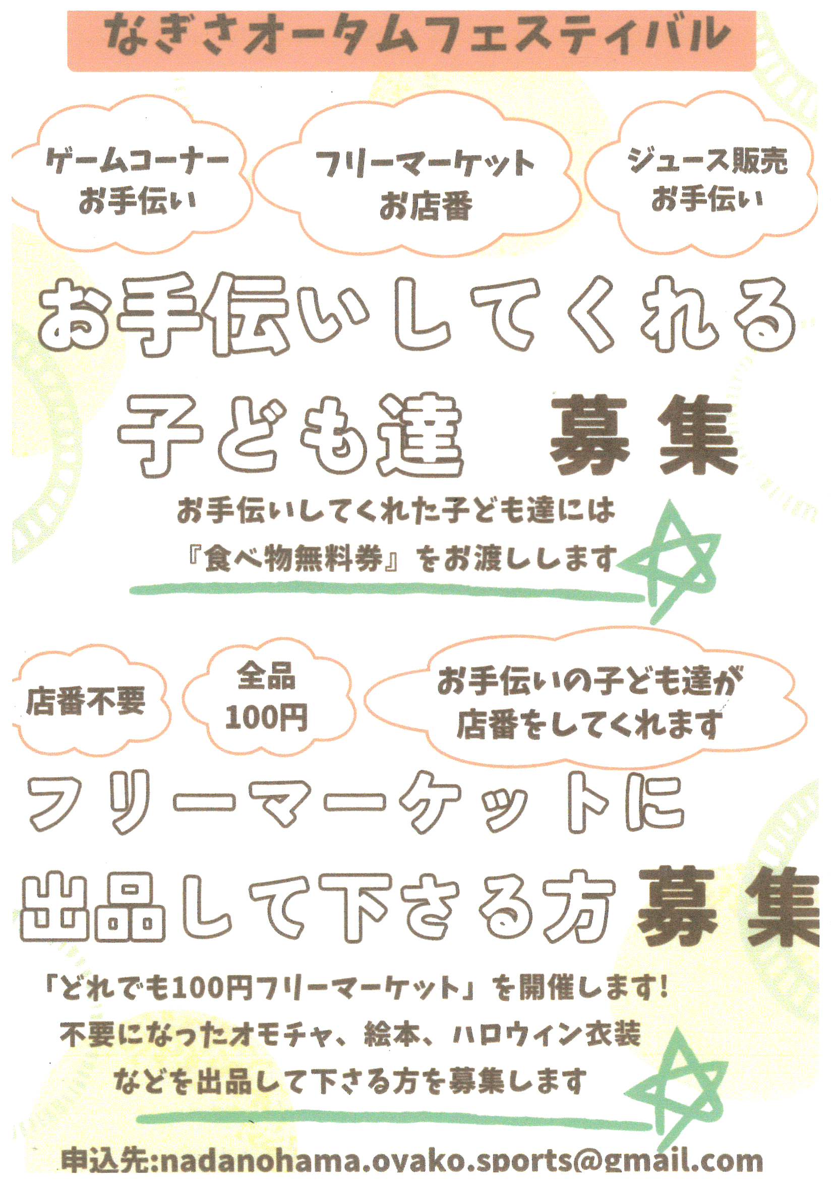 なぎさオータムフェスティバル子供達のお手伝い募集