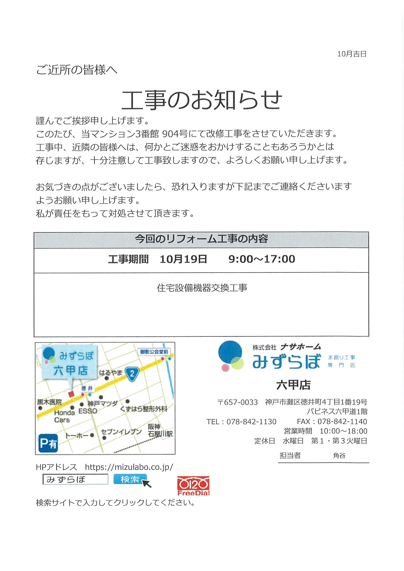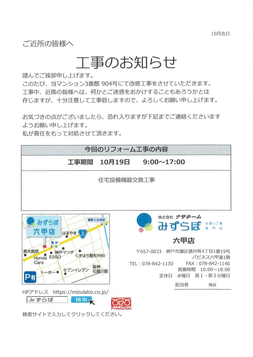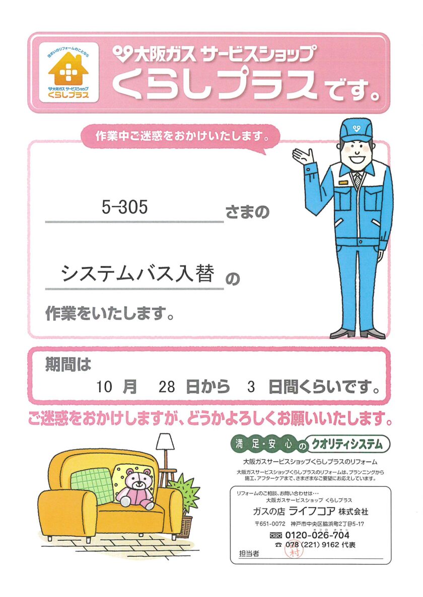 [5番館]リフォーム工事のお知らせ