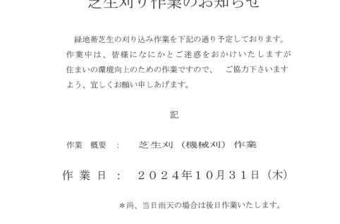 10月31日(木)芝生刈り作業のお知らせ
