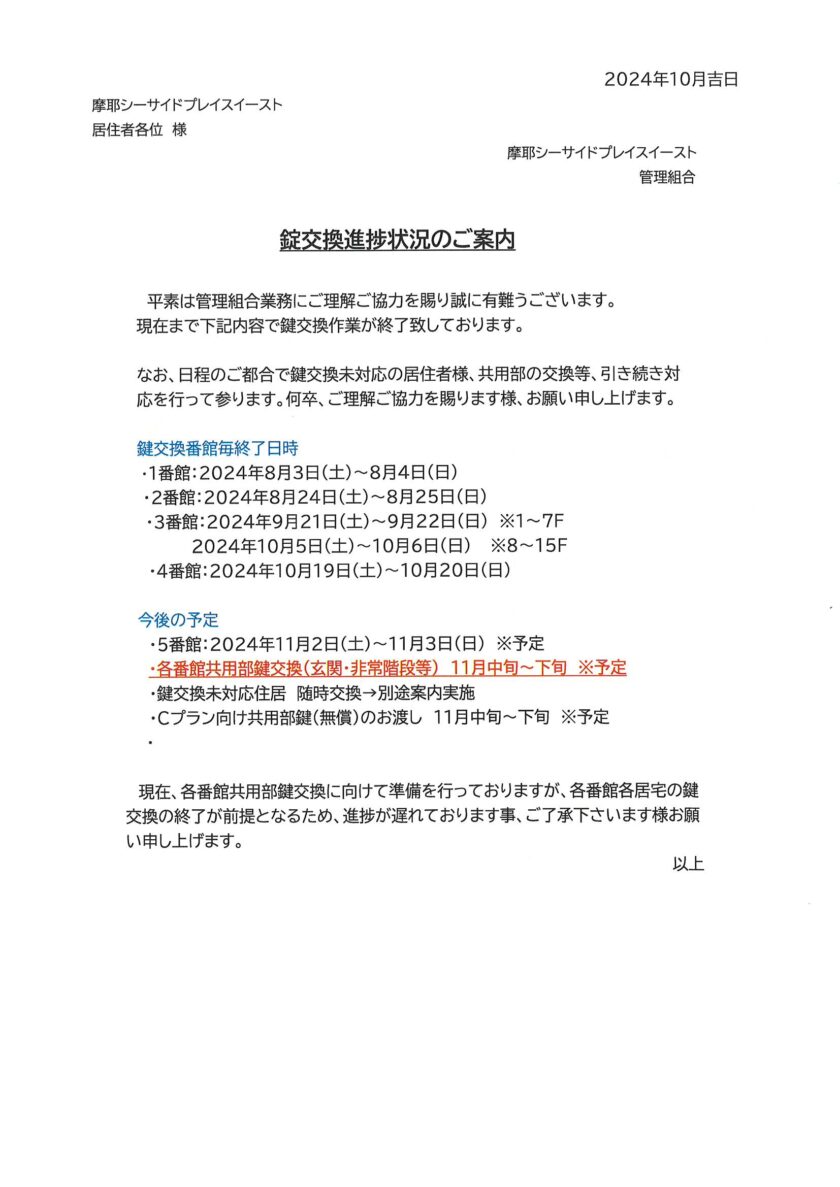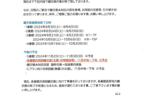 [1番館]リフォーム工事のお知らせ