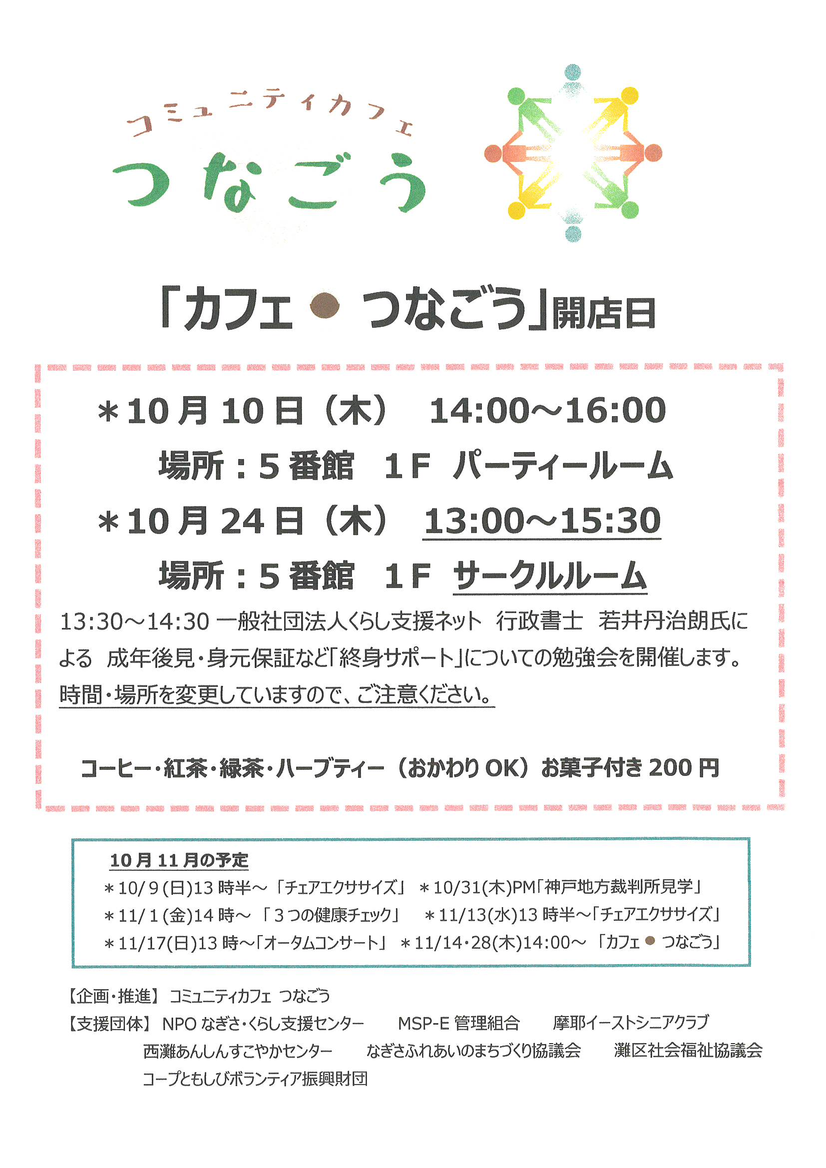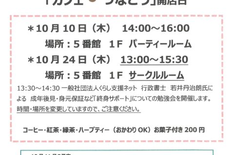 「カフェ・つなごう」開店日 10月10日・24日