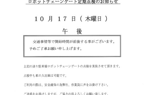 ロボットチェーンゲート定期点検のお知らせ(10/17実施)