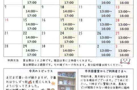 なだのはま小学校 市民図書室ニュース10月号